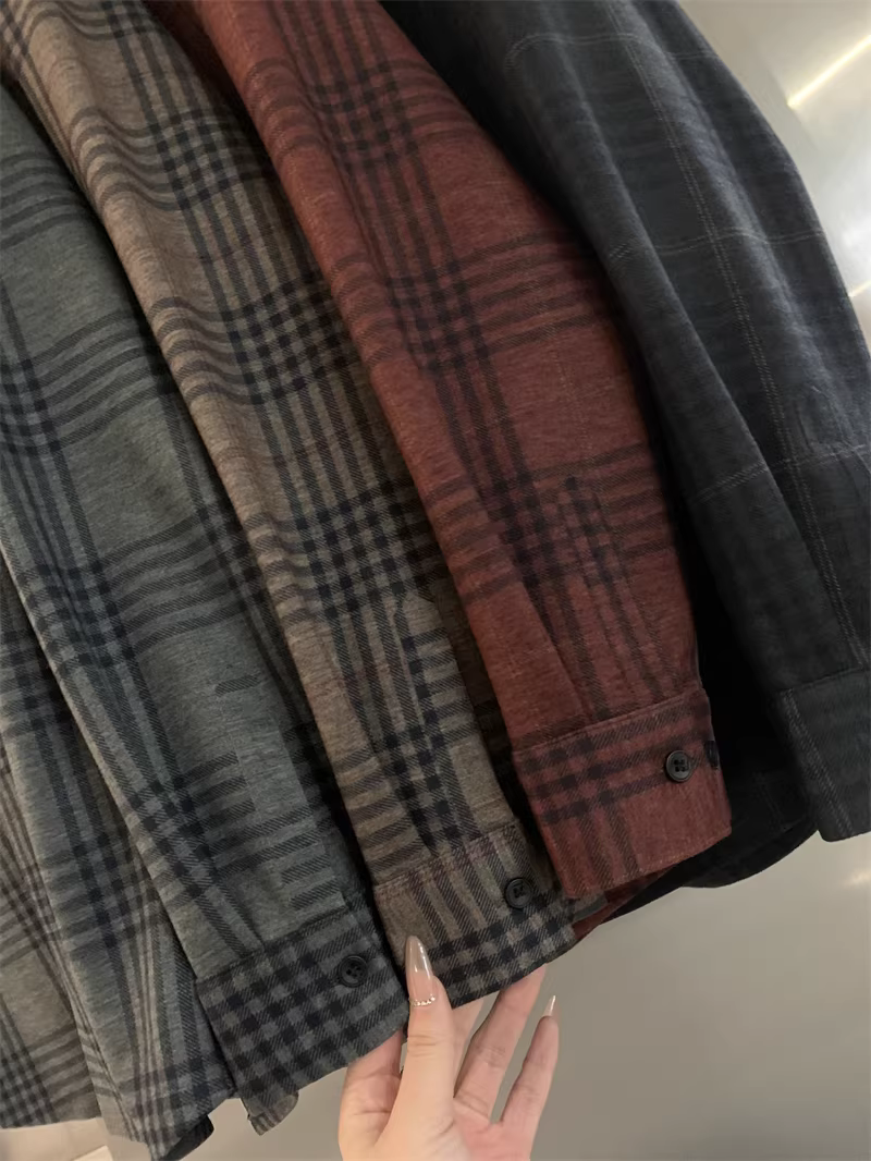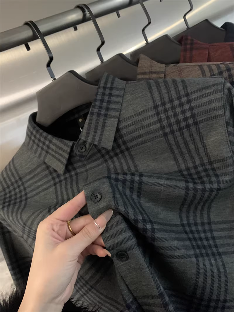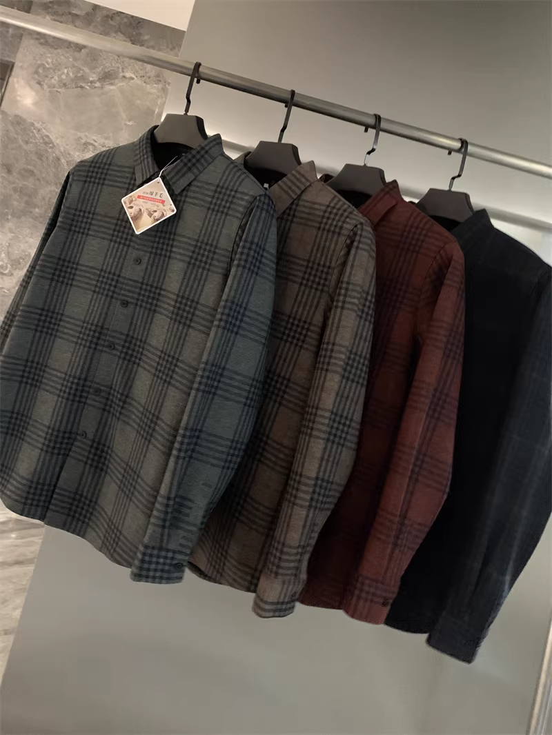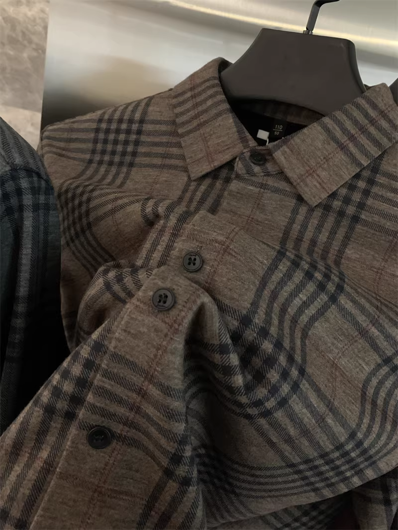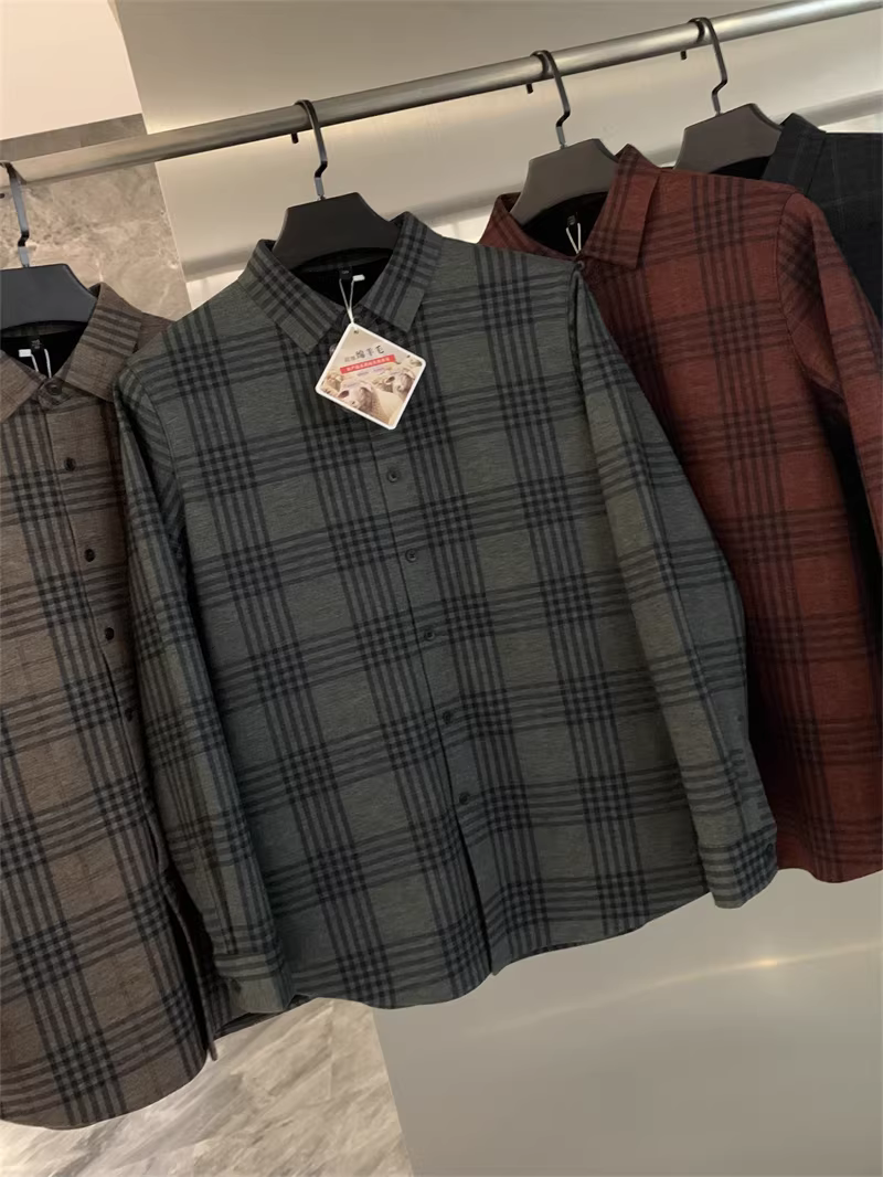 - Áo len Don Quixote + pha trộn tơ tằm! Áo sơ mi nam có cổ kẻ sọc ấm áp, lót lông cừu tích hợp mùa thu đông