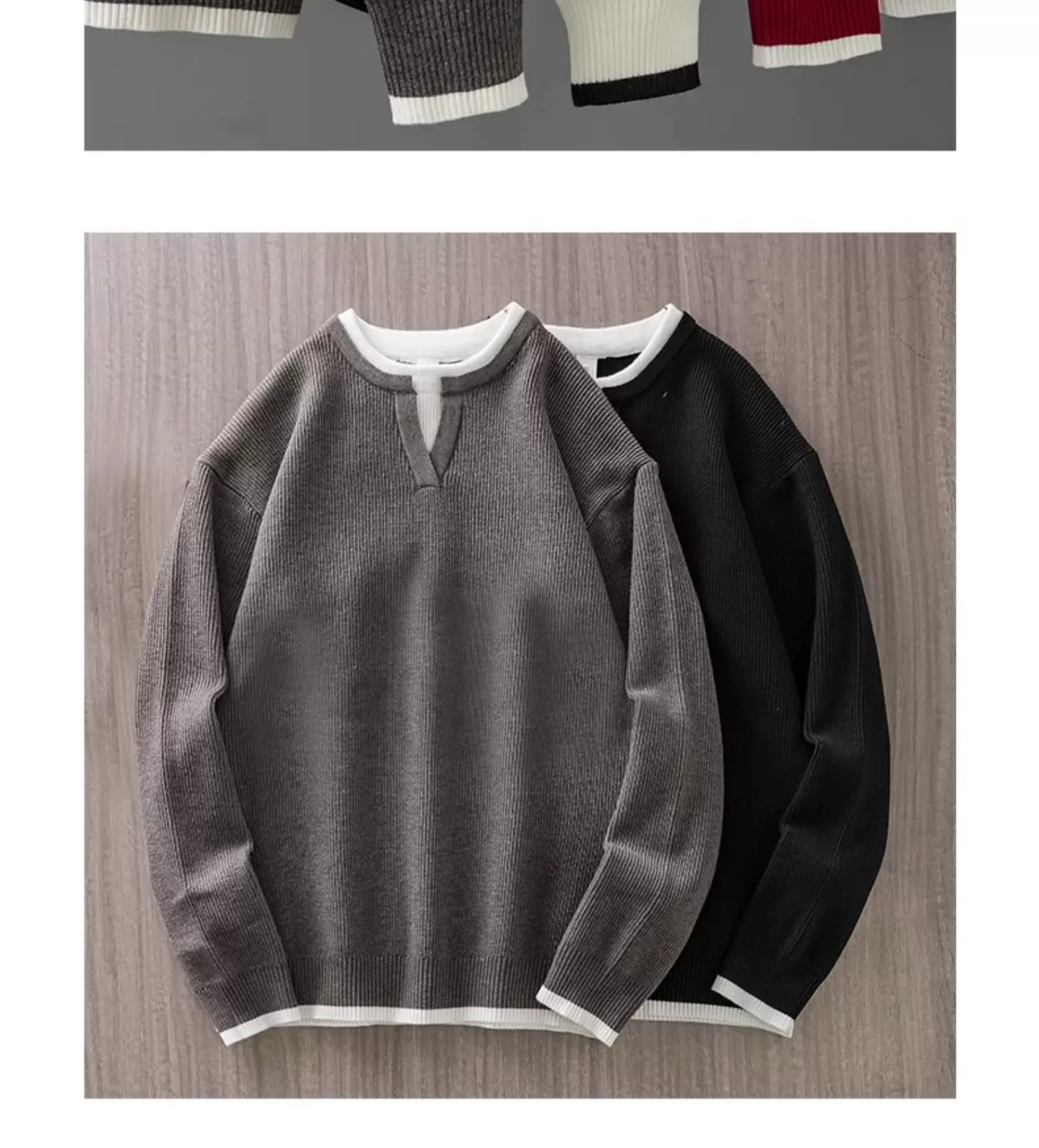 Áo len giả hai mảnh cổ chữ V hạng nặng dành cho nam, đồ dệt kim dày dặn ấm áp mùa thu đông, đồ dệt kim xếp lớp kiểu Mỹ.