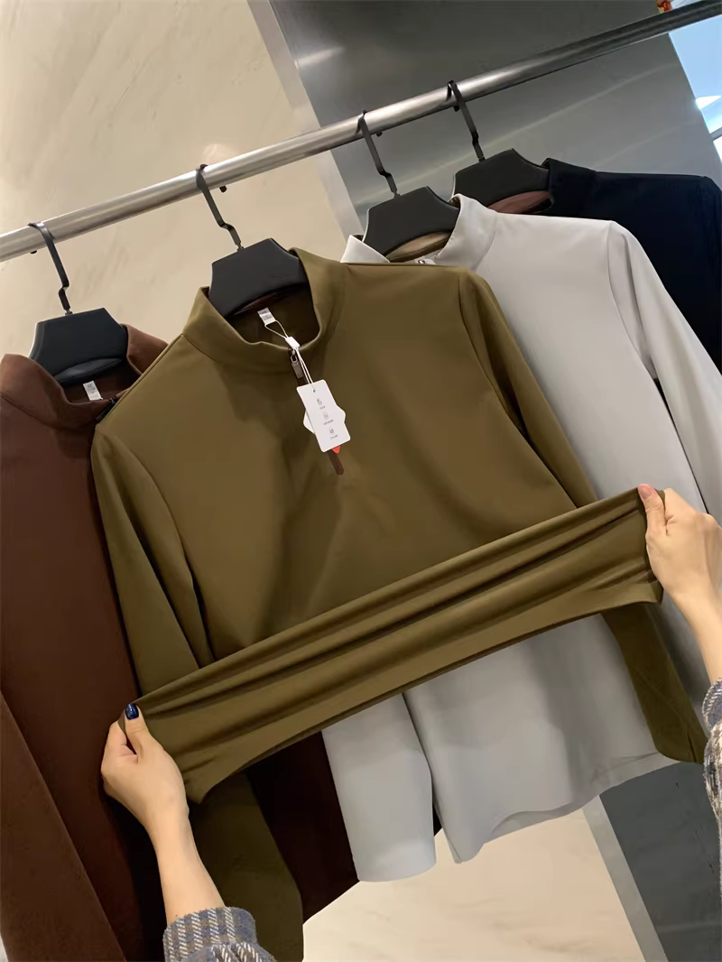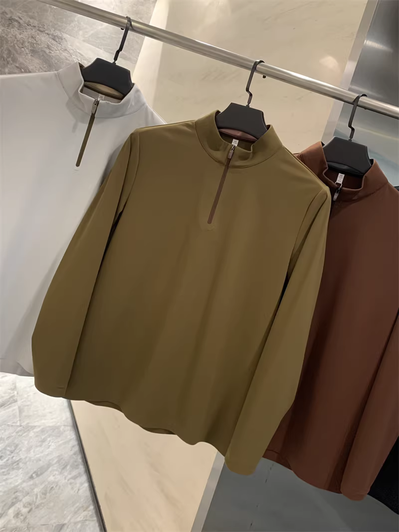 Áo len lông cừu ấm áp thân thiện với da Don Quixote! Áo thun nam dài tay có khóa kéo nửa thân, co giãn, thoải mái, ấm áp, màu trơn, phong cách thường ngày dành cho mùa thu đông.