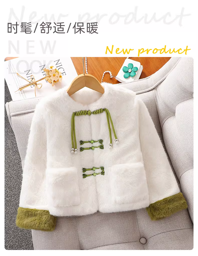 - Áo len lông phong cách Trung Hoa cho bé gái, quần áo bé gái lớn, áo khoác dày giữ ấm mới năm 2025, áo khoác lông chồn mùa thu đông cho trẻ em