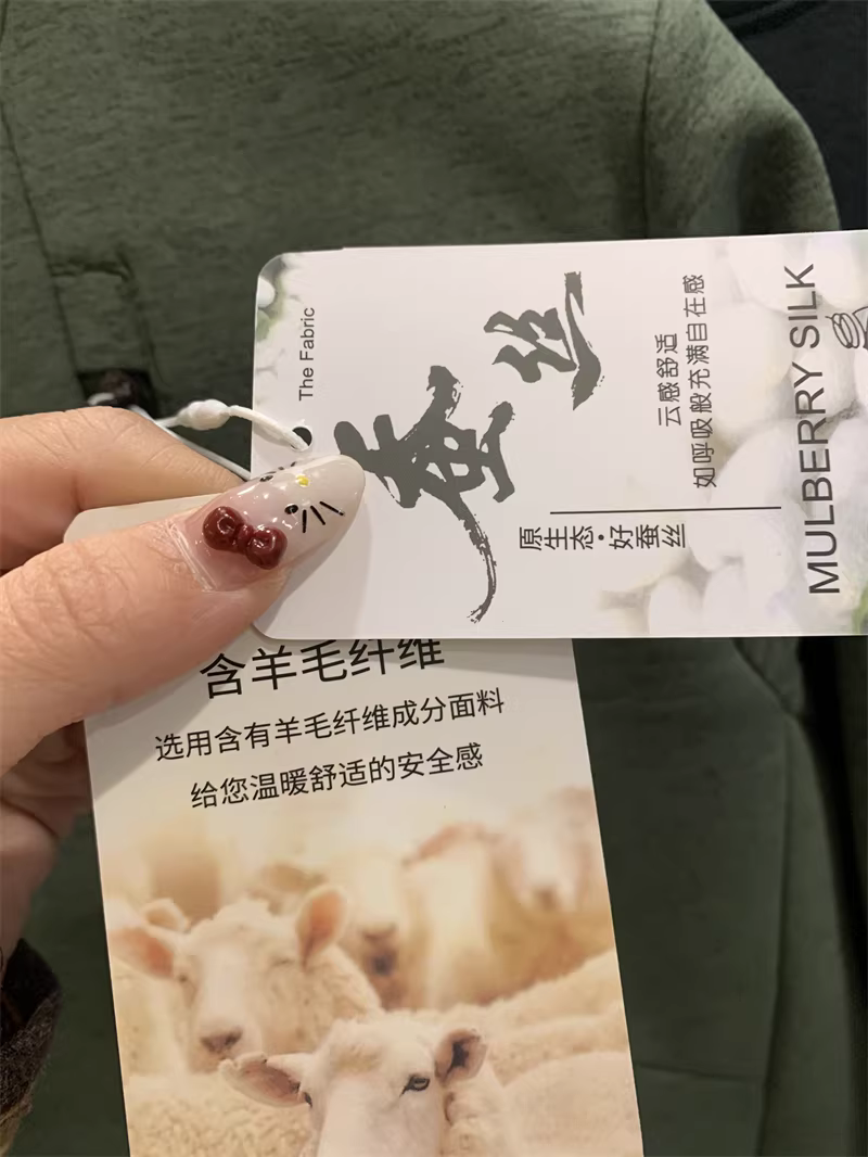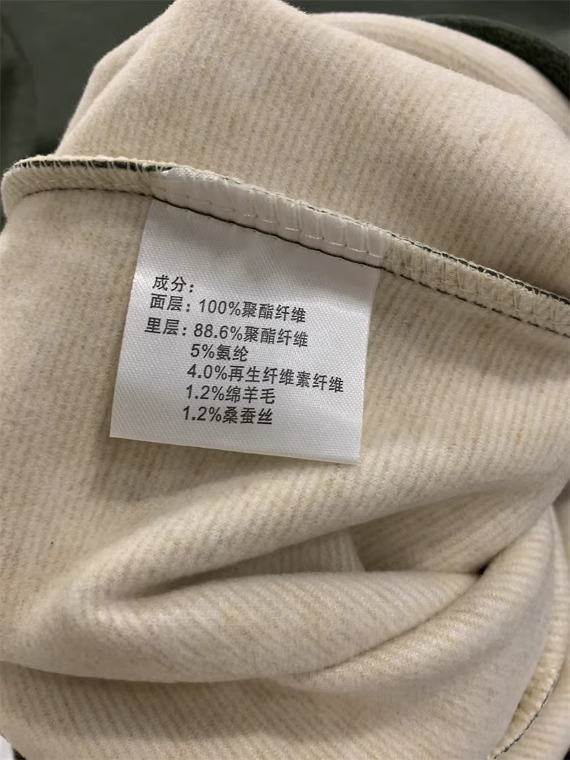 里层:88.6%聚酯纤维+5%氨纶+4%再生纤维素纤维+1.2%绵羊毛+1.2%桑蚕丝