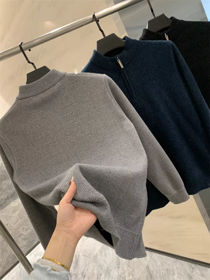 - Áo len nam Don Quixote ODM bán trực tiếp! Lót lông cừu tích hợp cho thêm độ ấm! Áo len nửa khóa kéo mùa đông.