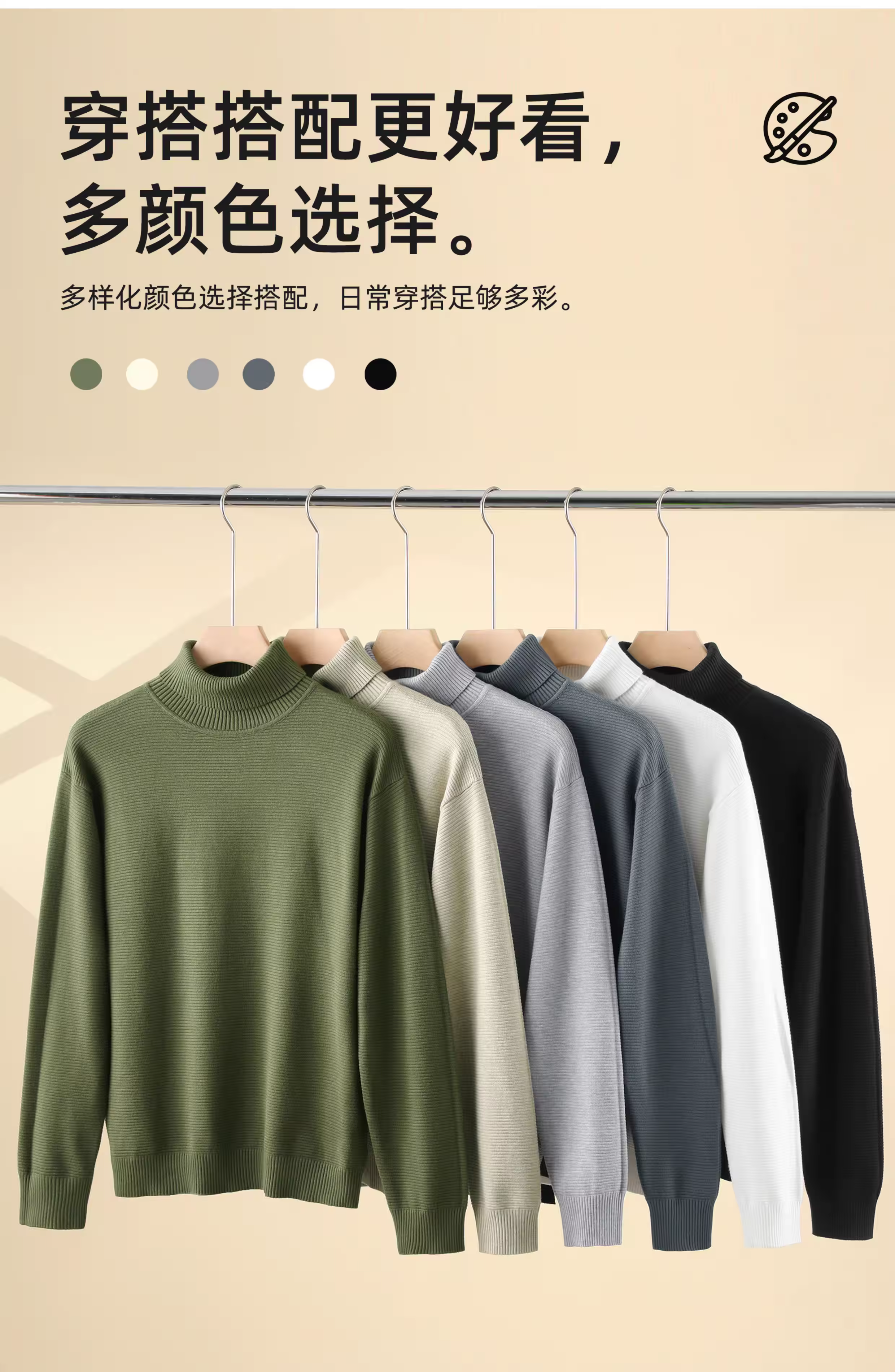 Áo len nam JIEYI chất liệu gân cao cổ màu trơn tay dài phong cách Nhật Bản, mặc trong hoặc mặc ngoài