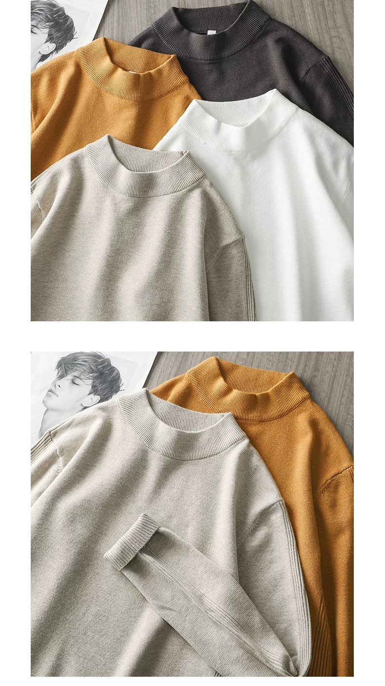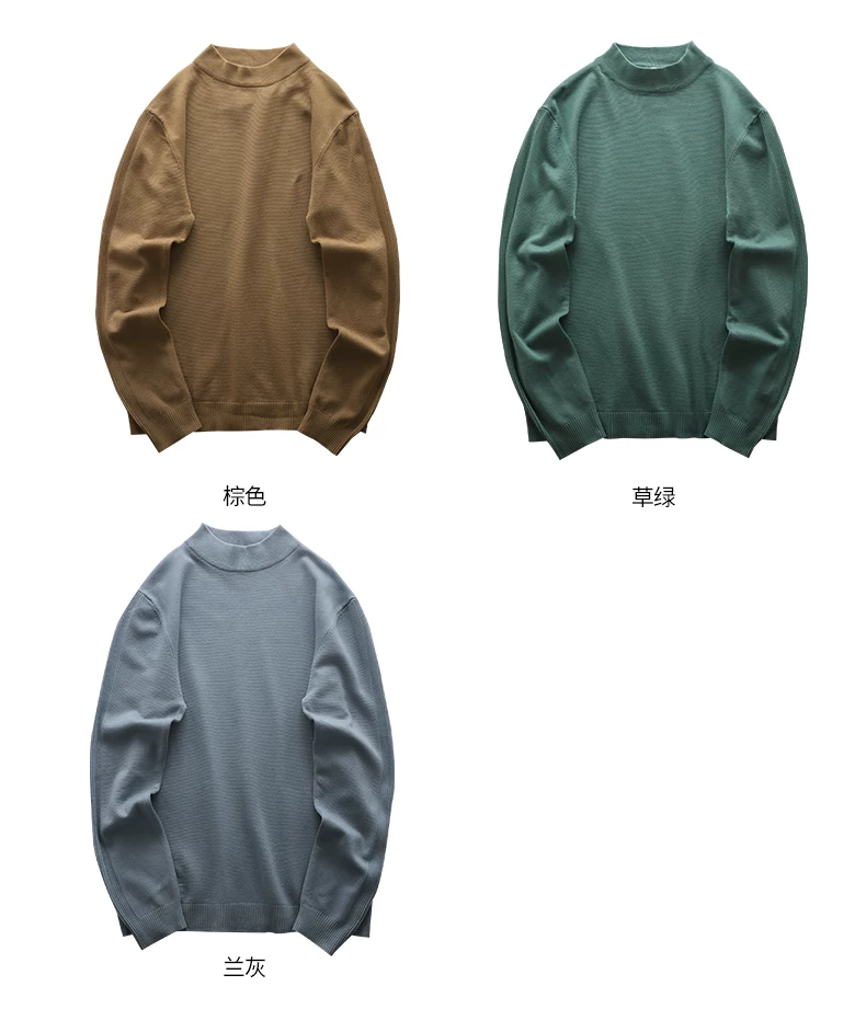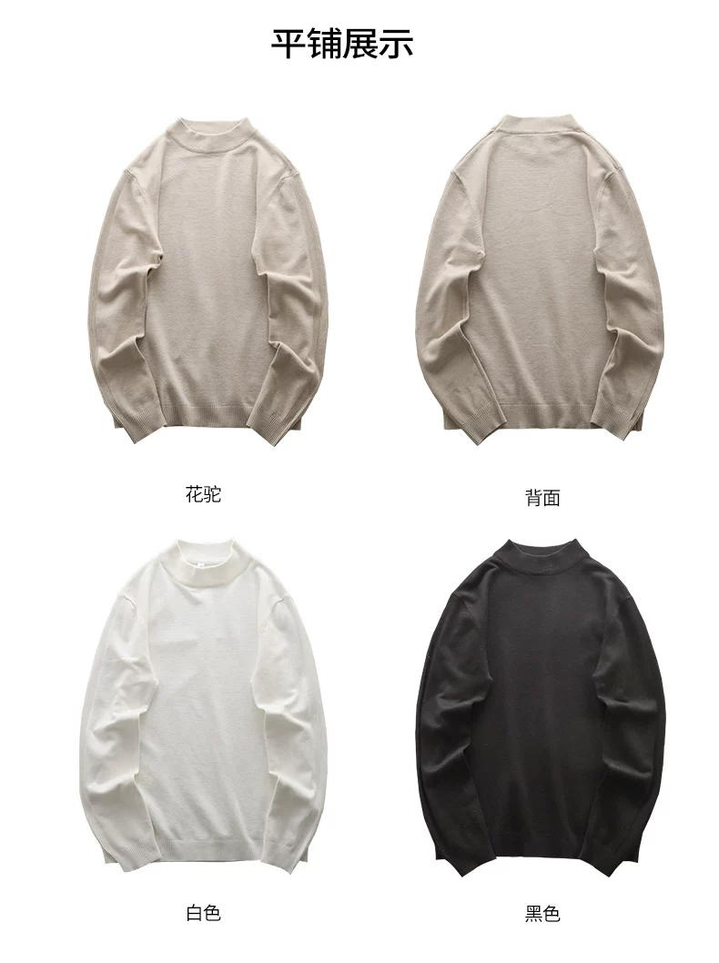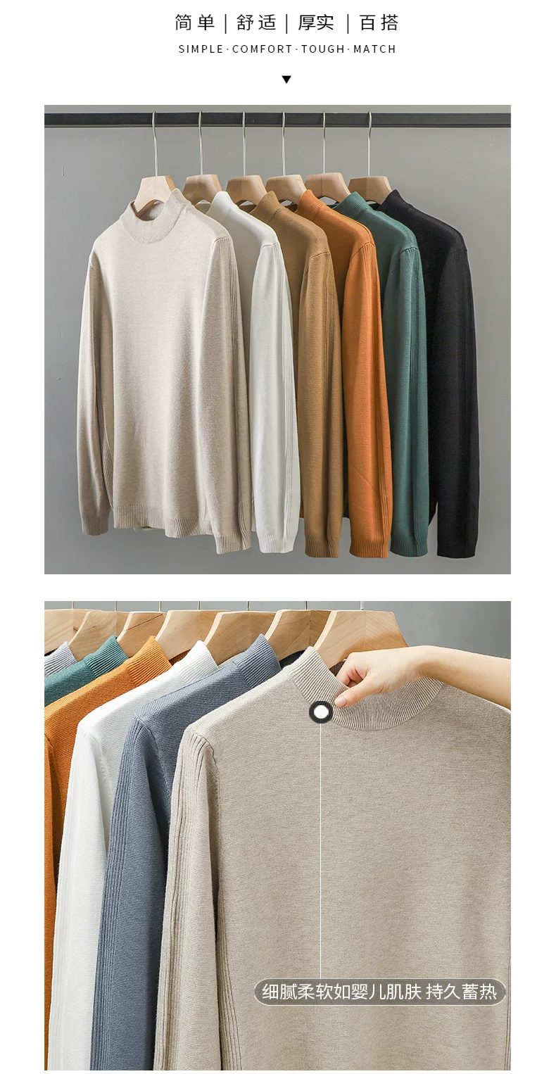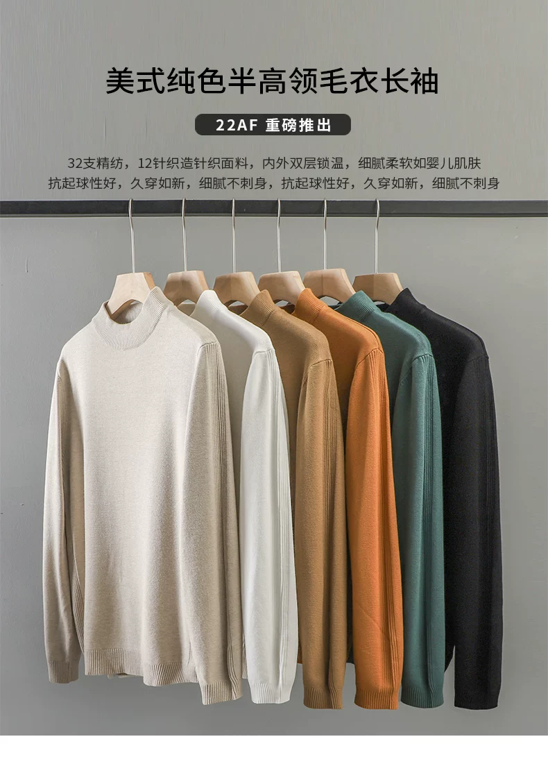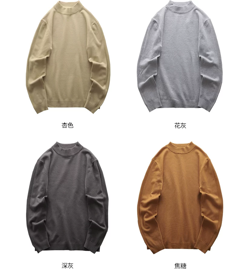 Áo len nam kiểu Mỹ 320G, chất dày dặn, mùa thu đông, màu trơn, ôm dáng, cổ nửa cao, lớp lót giữ ấm, chất liệu dệt kim cổ trung.