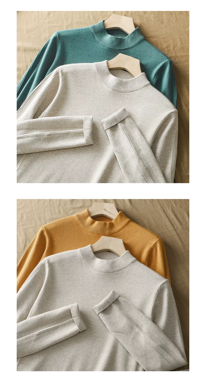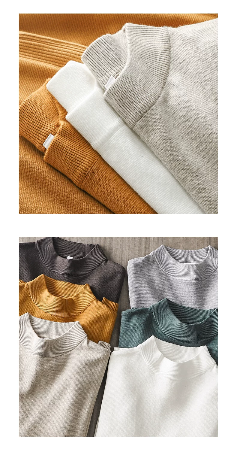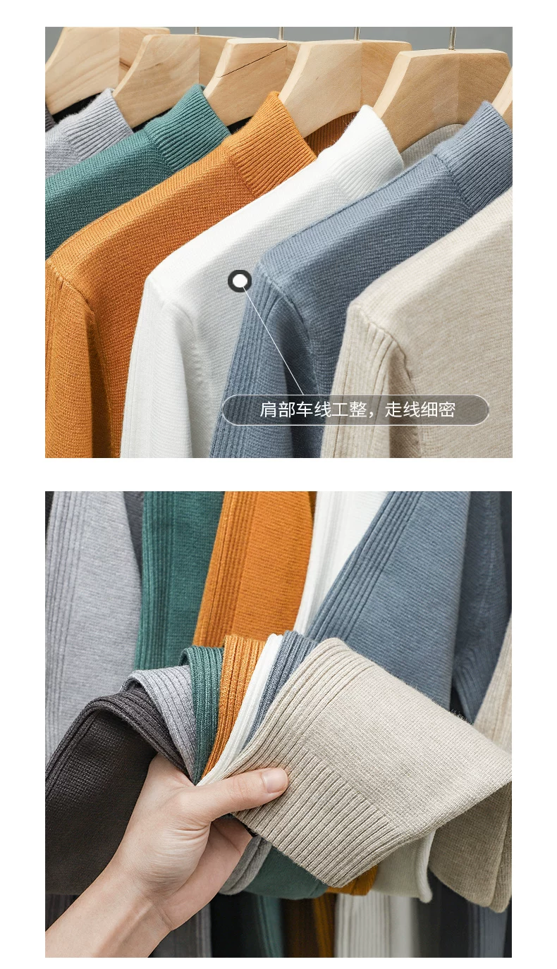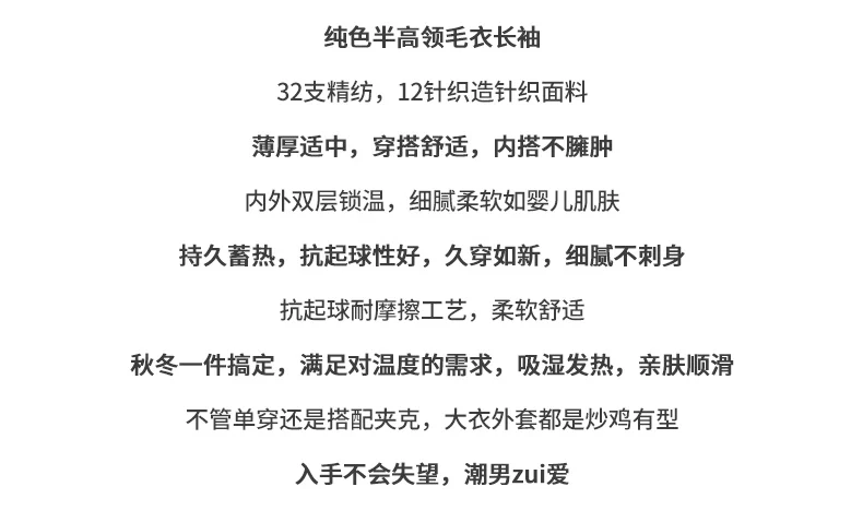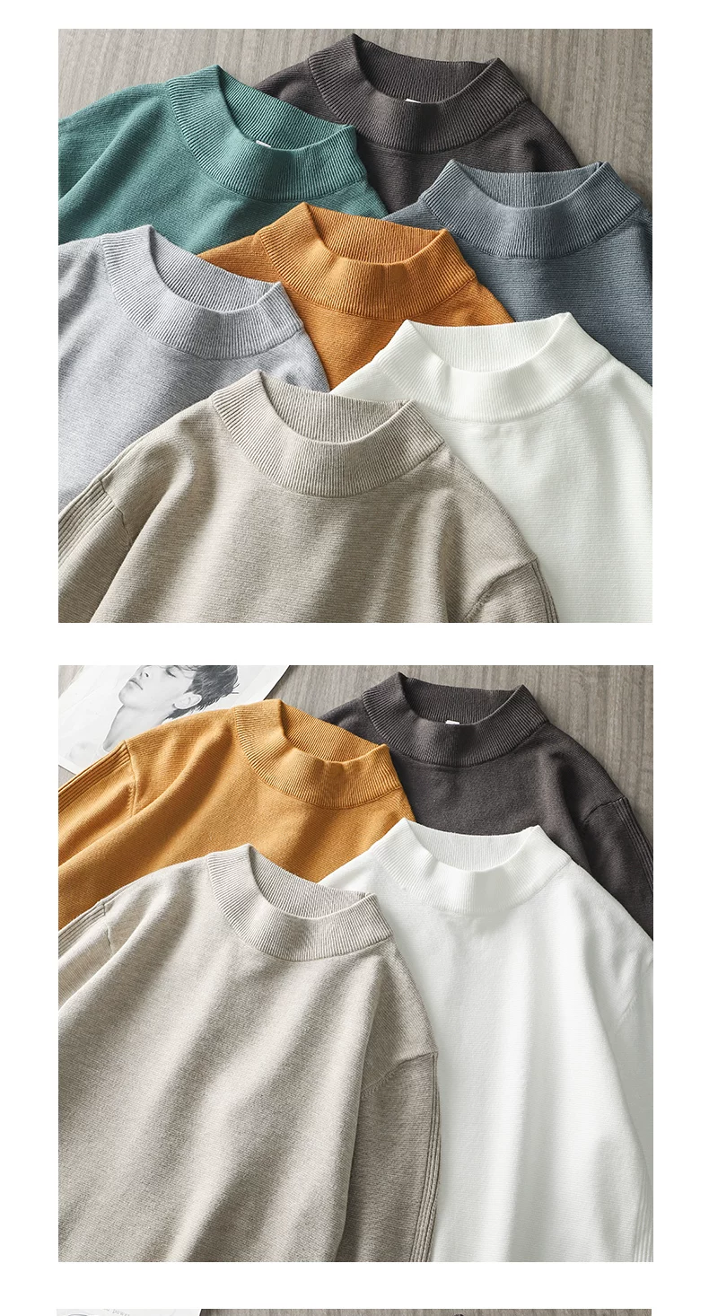 Áo len nam kiểu Mỹ 320G, chất dày dặn, mùa thu đông, màu trơn, ôm dáng, cổ nửa cao, lớp lót giữ ấm, chất liệu dệt kim cổ trung.