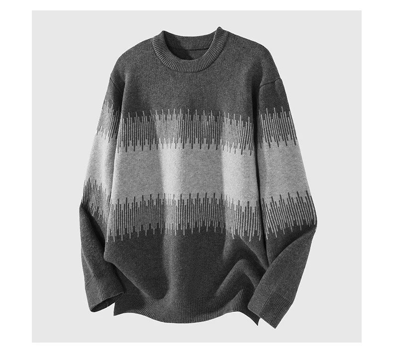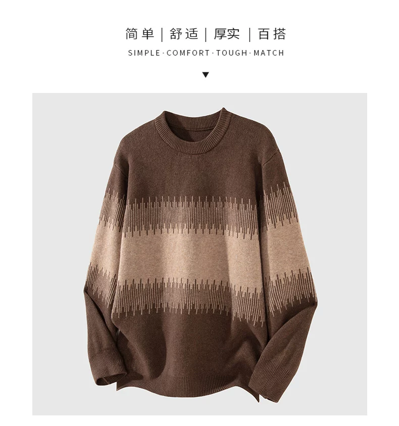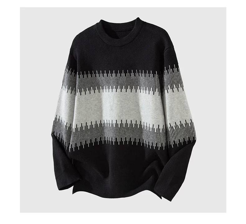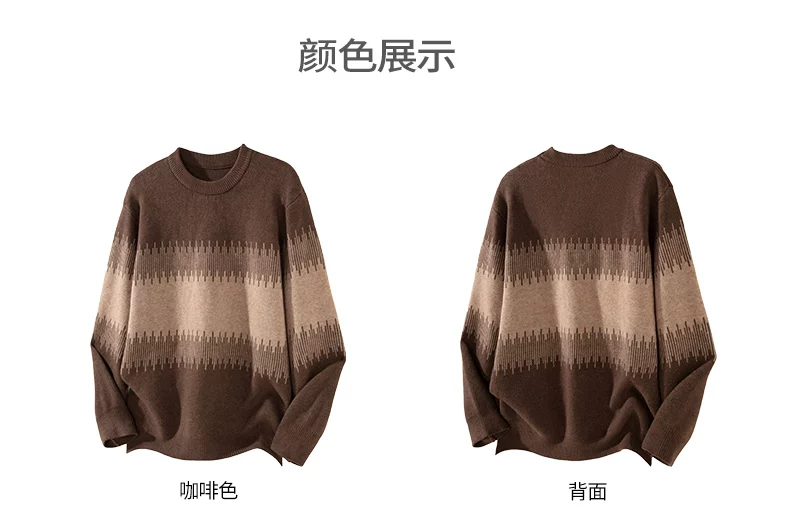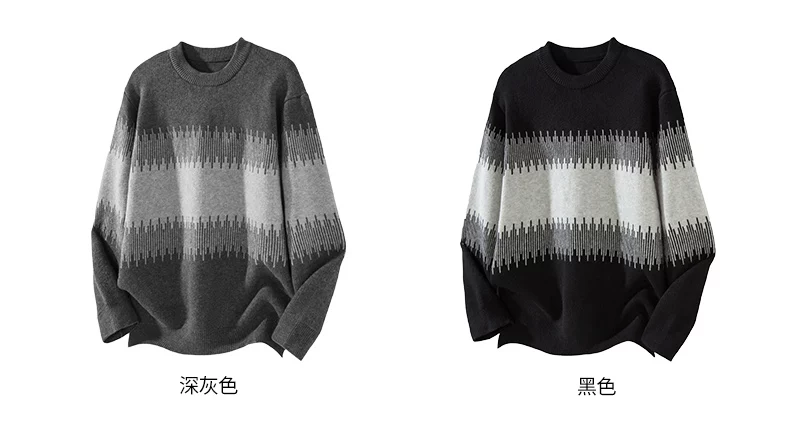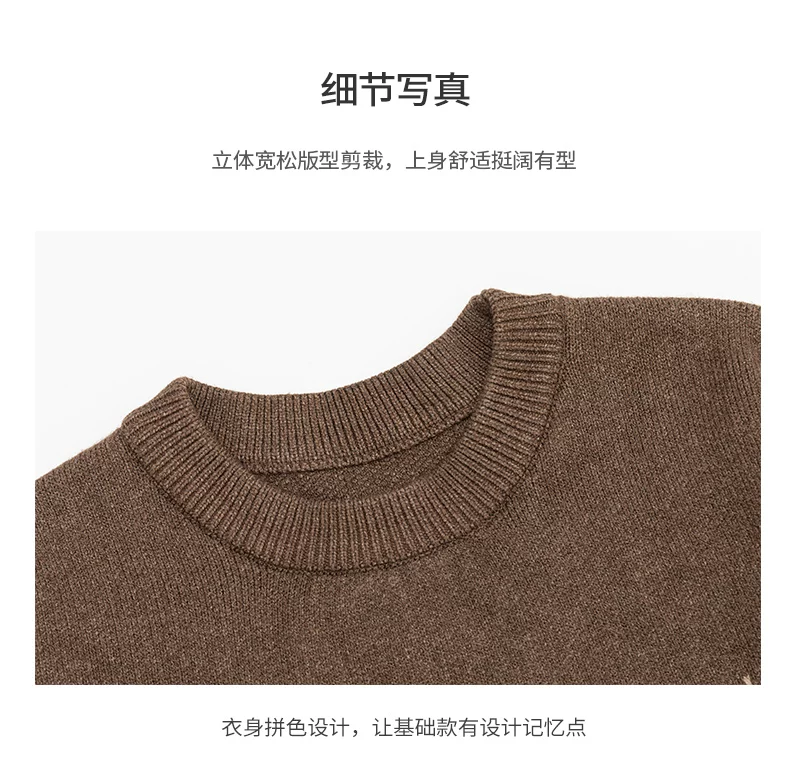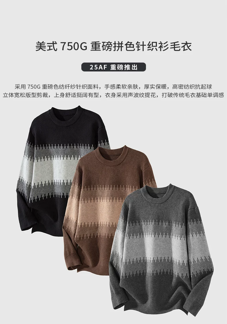 Áo len nam OMZM750G màu sắc nổi bật, phong cách retro mùa đông, kiểu dáng lười biếng, áo len cổ tròn phối màu tương phản, áo lót giữ ấm