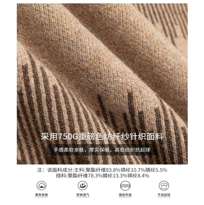 - Áo len nam OMZM750G màu sắc nổi bật, phong cách retro mùa đông, kiểu dáng lười biếng, áo len cổ tròn phối màu tương phản, áo lót giữ ấm