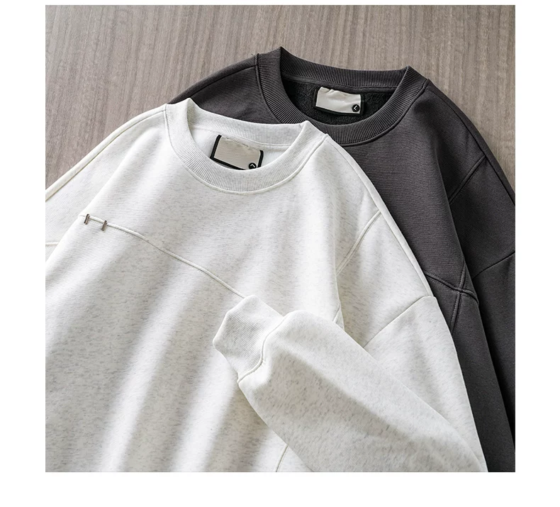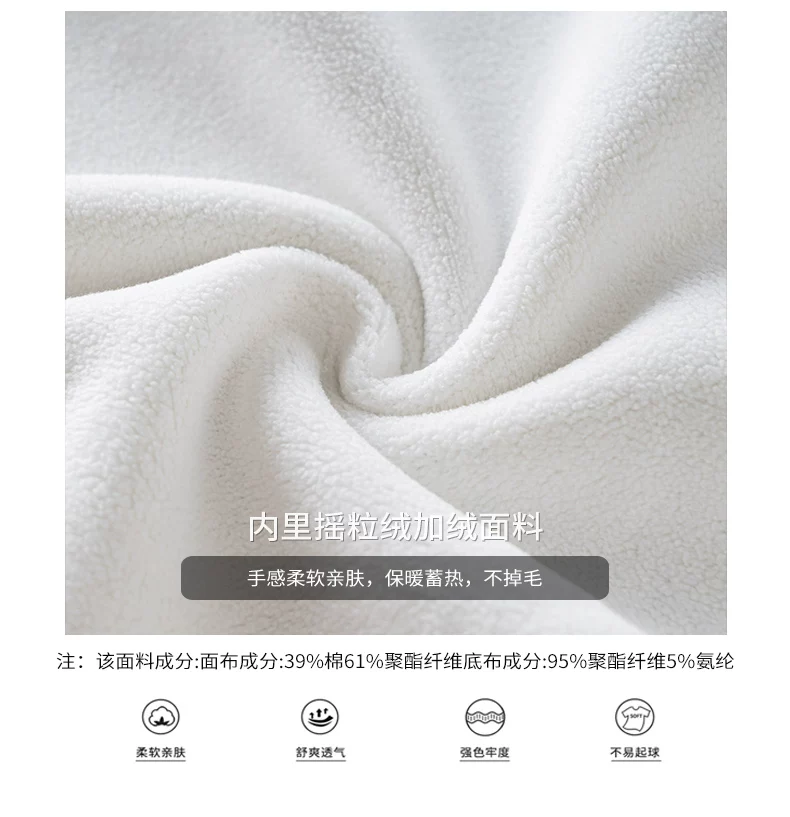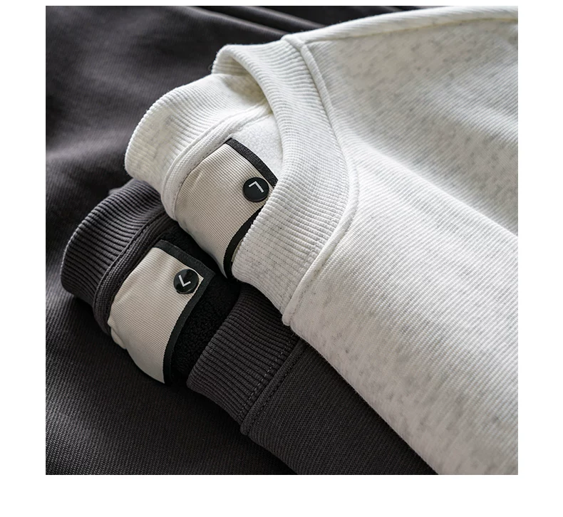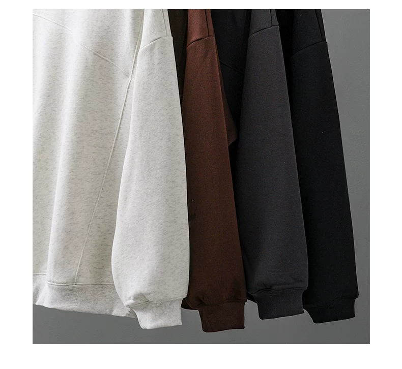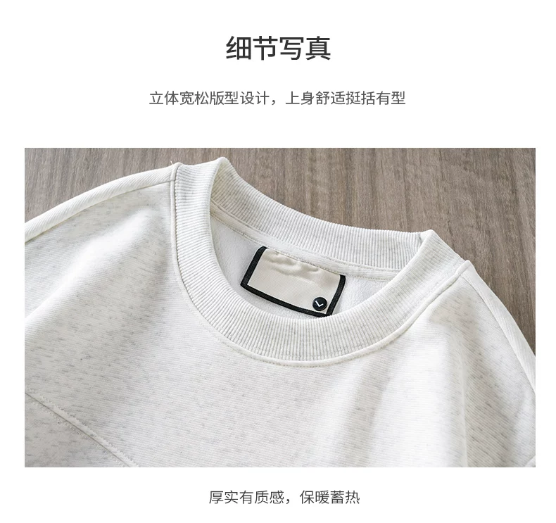 - Áo len nỉ hạng nặng OMZM460G dành cho nam, áo len lót lông cừu giữ ấm mùa đông, áo trơn không mũ rộng rãi.