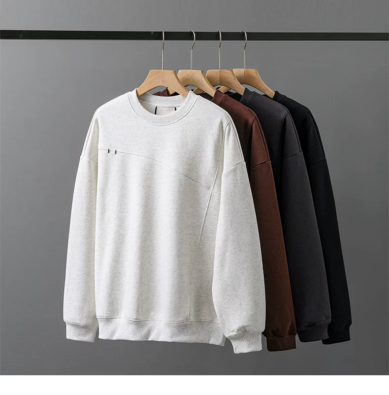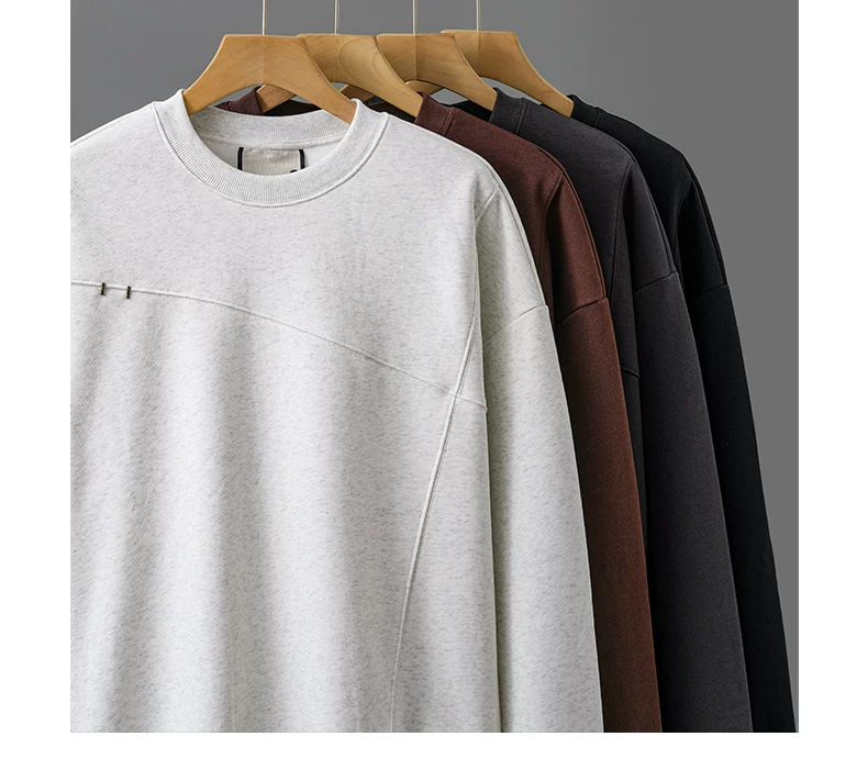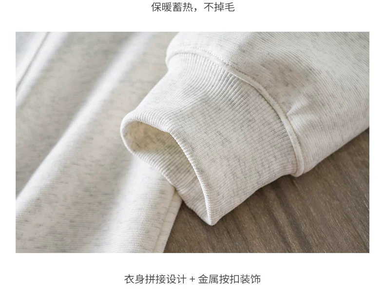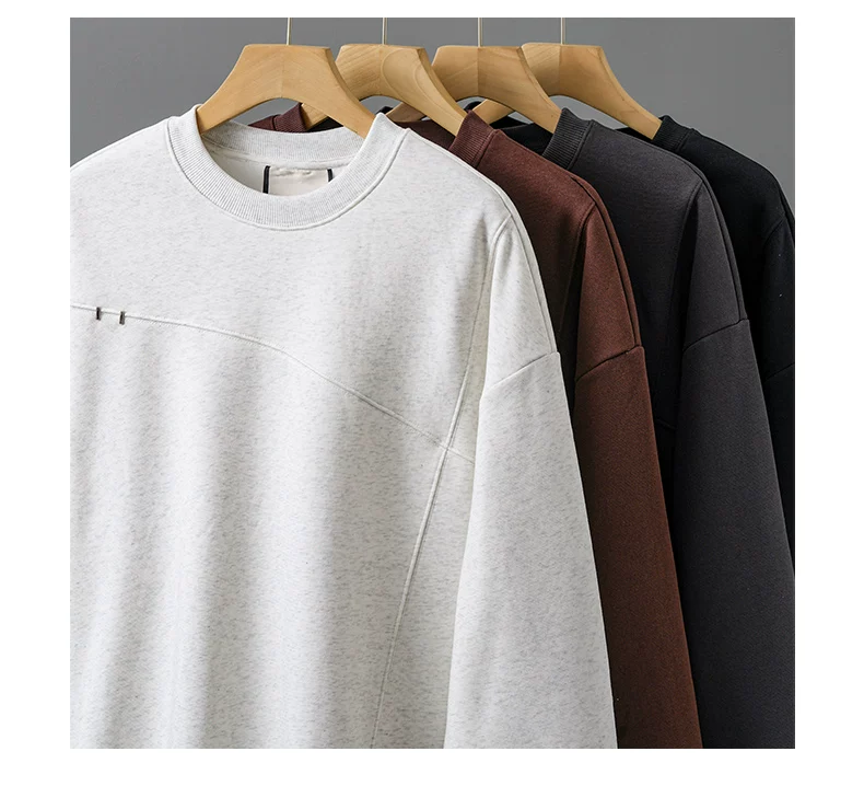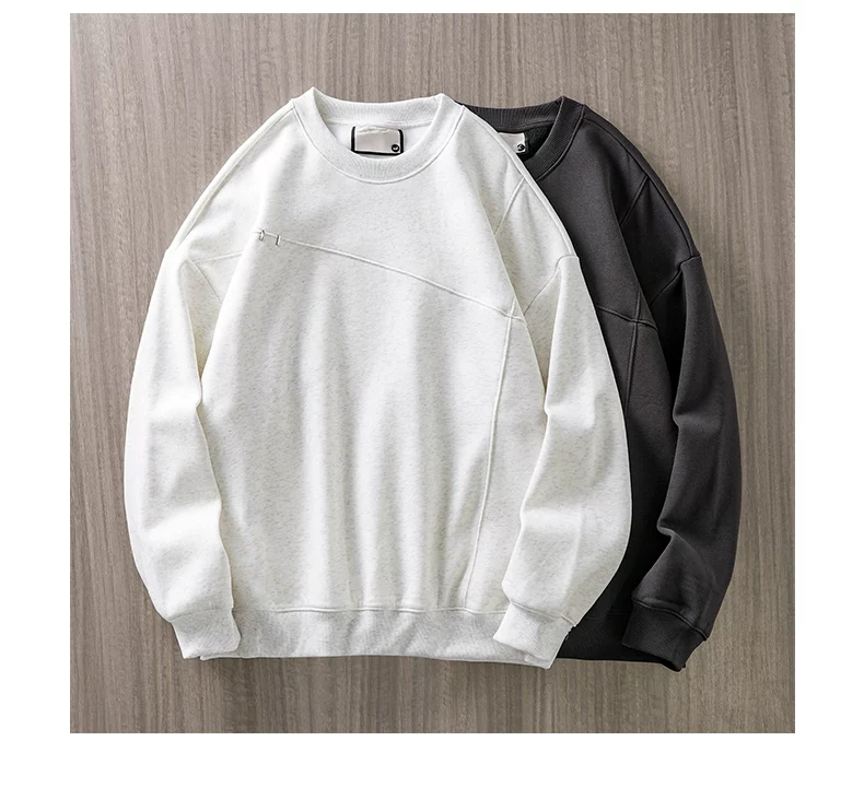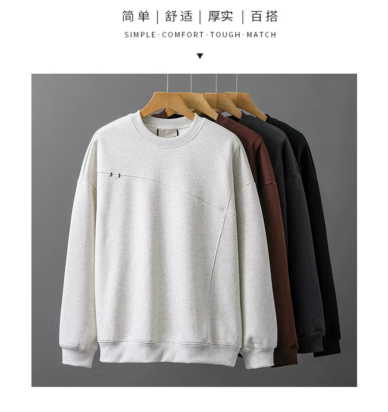 - Áo len nỉ hạng nặng OMZM460G dành cho nam, áo len lót lông cừu giữ ấm mùa đông, áo trơn không mũ rộng rãi.