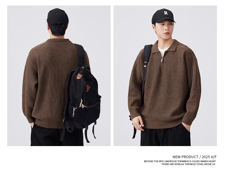 - Áo len nửa khóa kéo hạng nặng Pure Group 800G dành cho nam, phong cách Mỹ mùa thu đông, dày dặn với cảm giác cao cấp, áo khoác dệt kim cổ POLO.