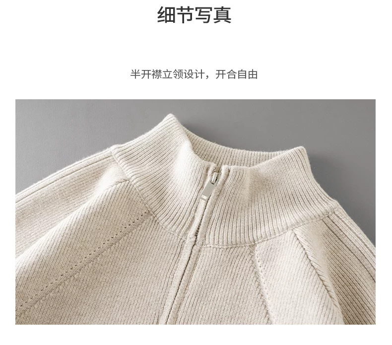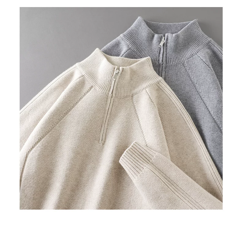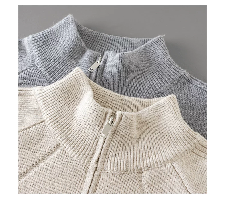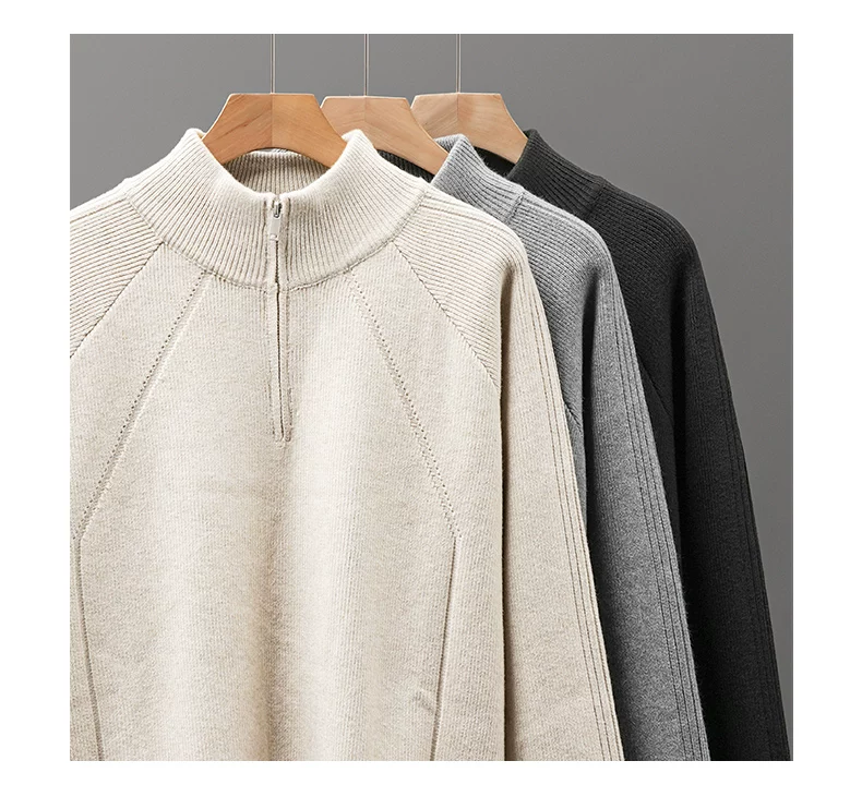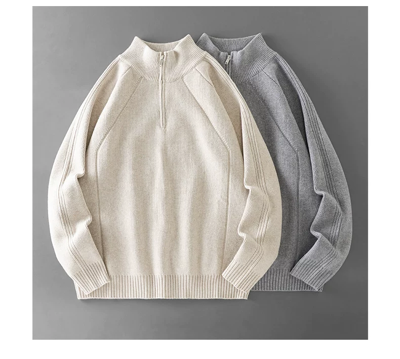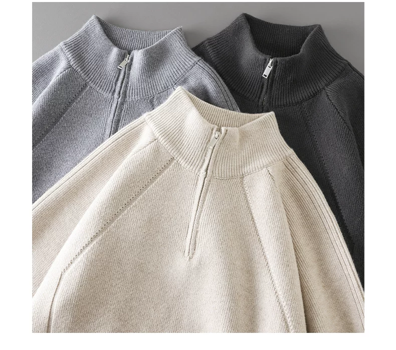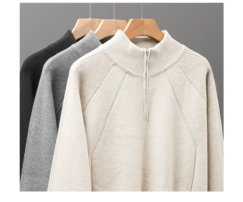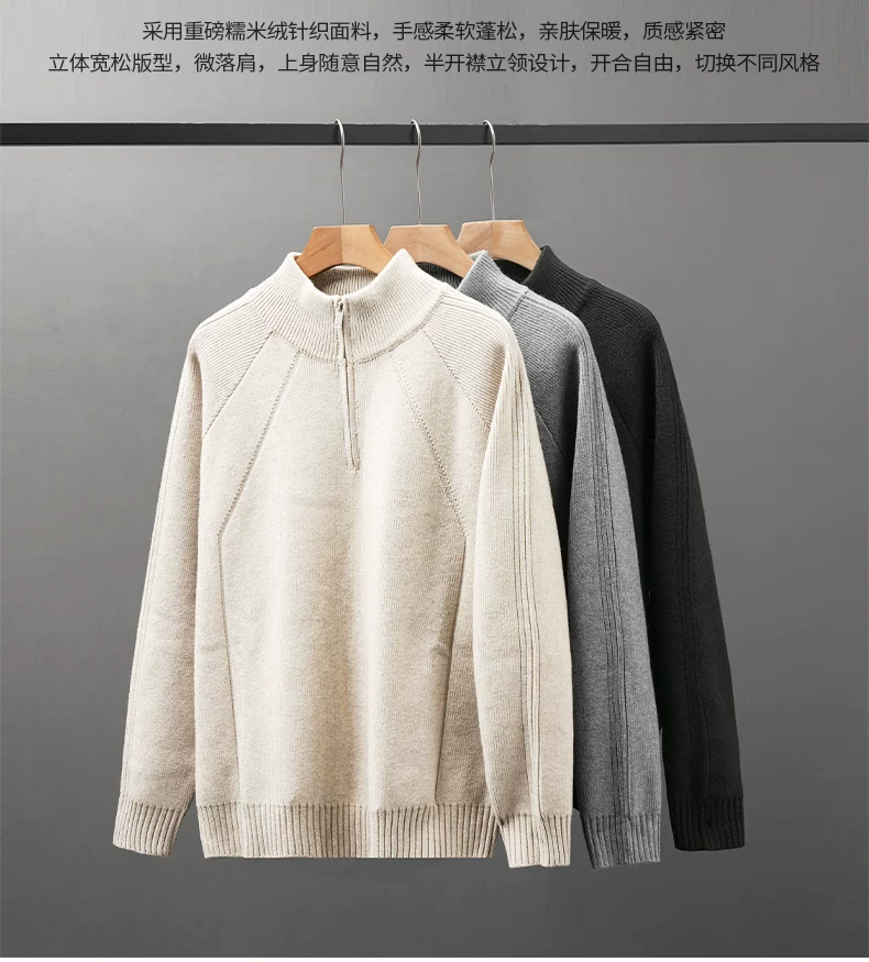 - Áo len nửa khóa kéo OMZM dành cho nam, áo len dệt kim cổ đứng dày dặn ấm áp mùa thu đông, áo len chui đầu dáng rộng và thoải mái