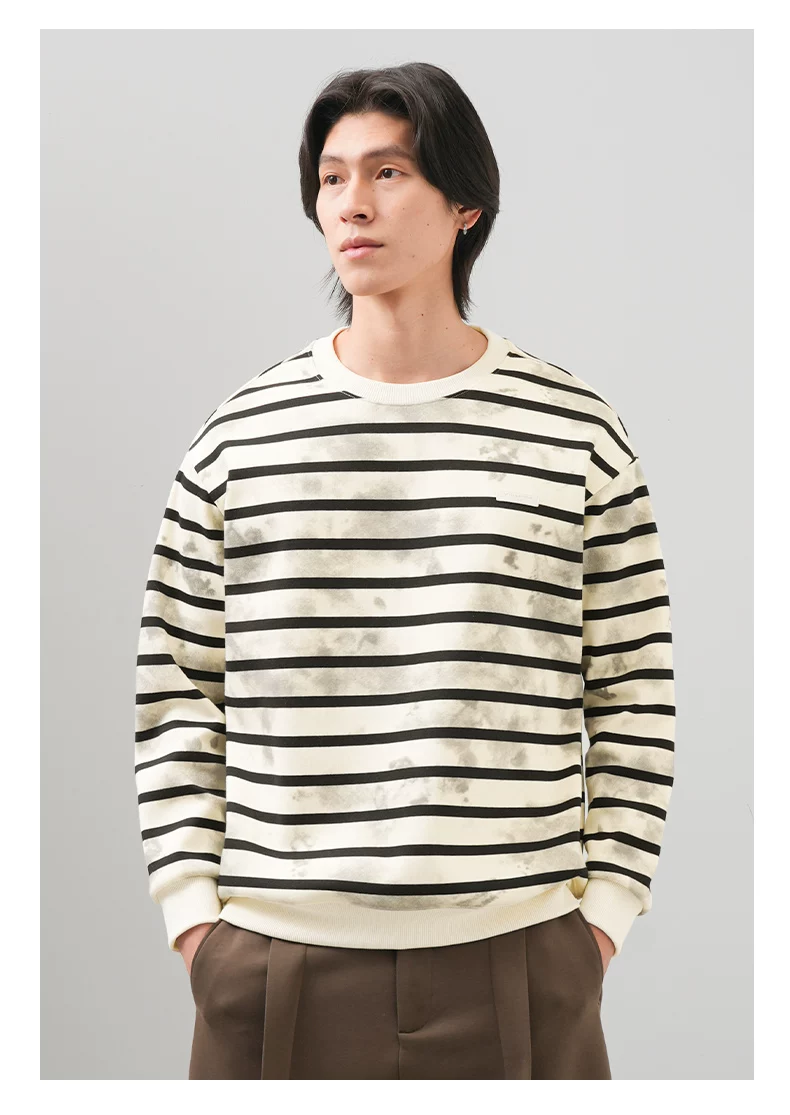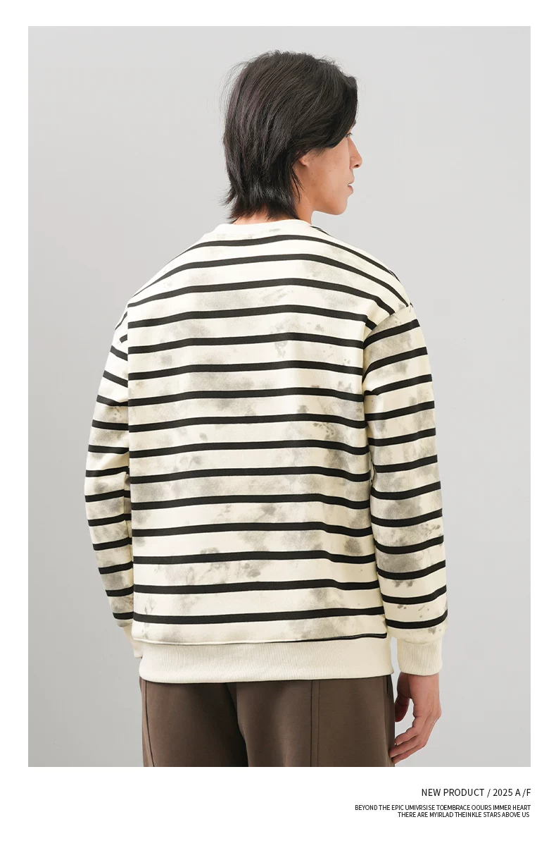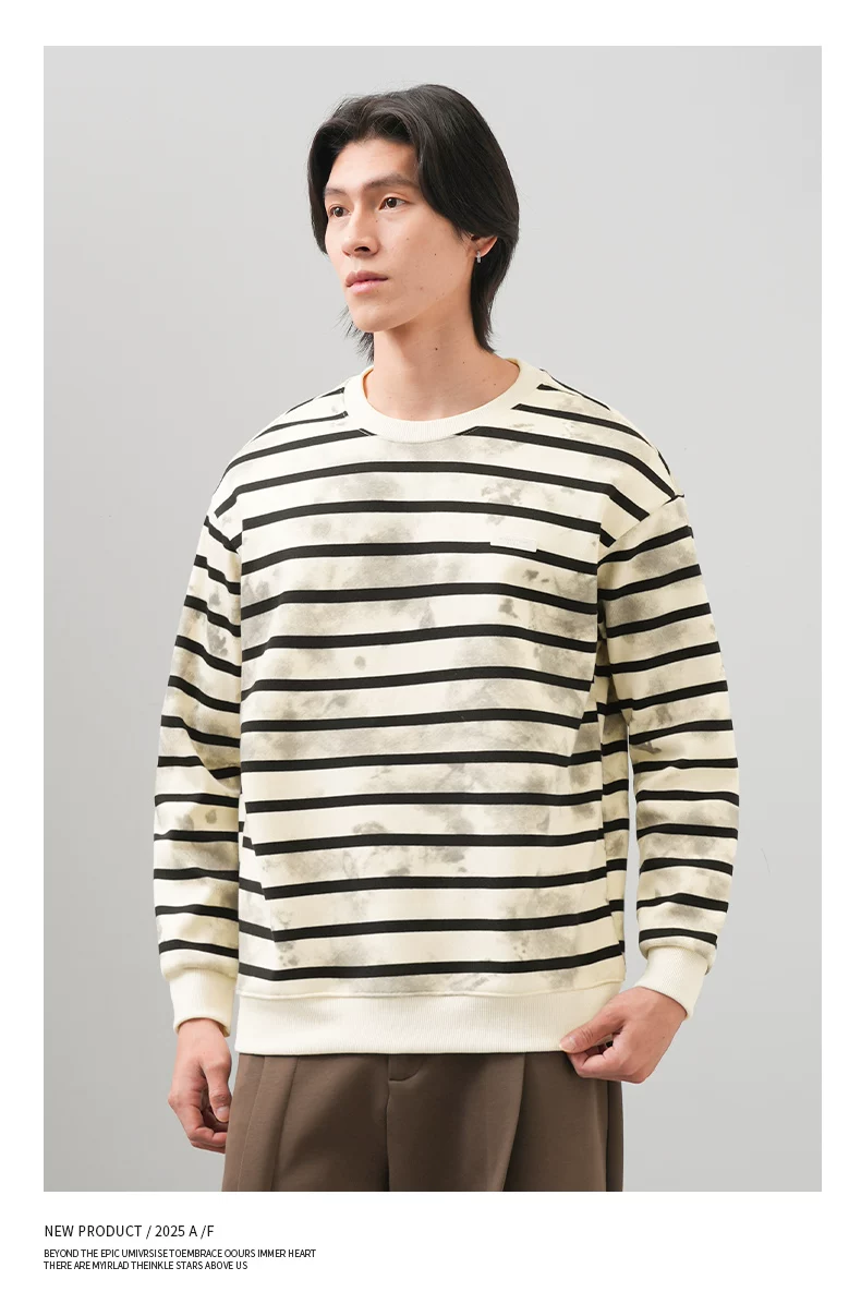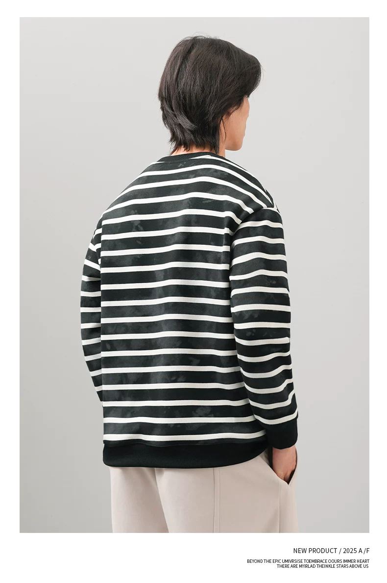 Áo len sọc kiểu Mỹ OMZM dành cho nam, áo khoác dài tay cổ tròn phối màu mùa thu đông 2025, áo lót nhuộm chàm thời thượng mới