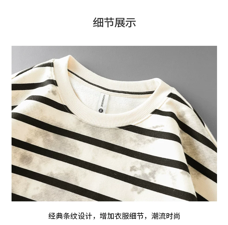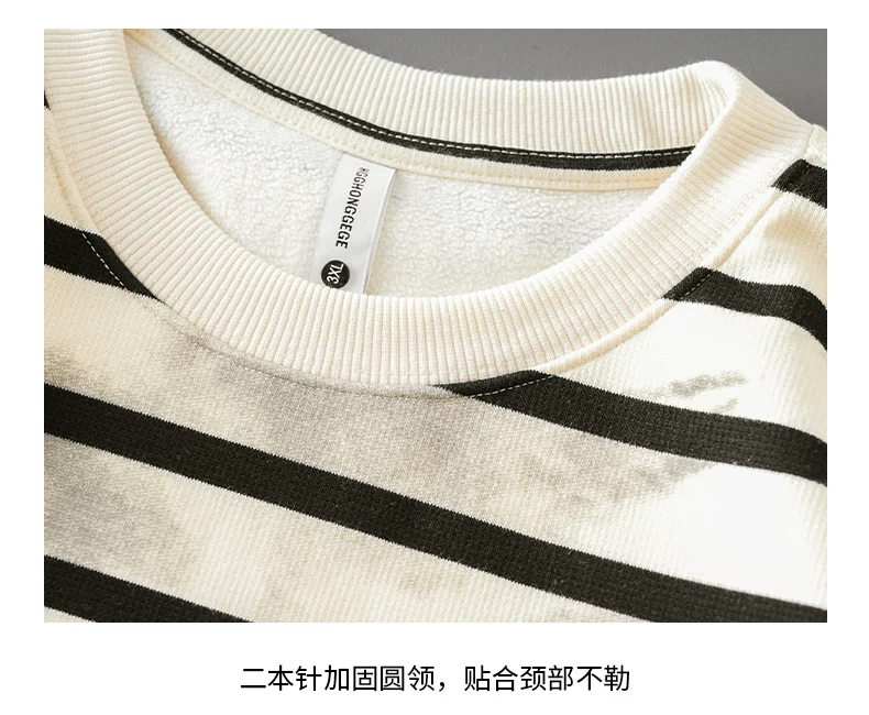- Áo len sọc kiểu Mỹ OMZM dành cho nam, áo khoác dài tay cổ tròn phối màu mùa thu đông 2025, áo lót nhuộm chàm thời thượng mới
