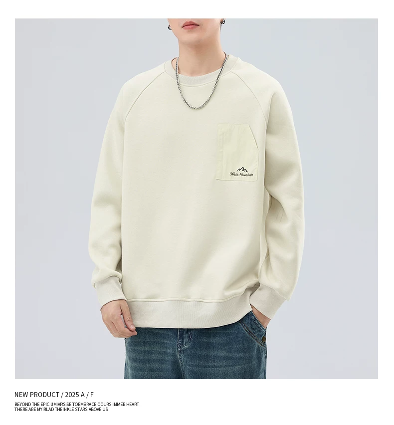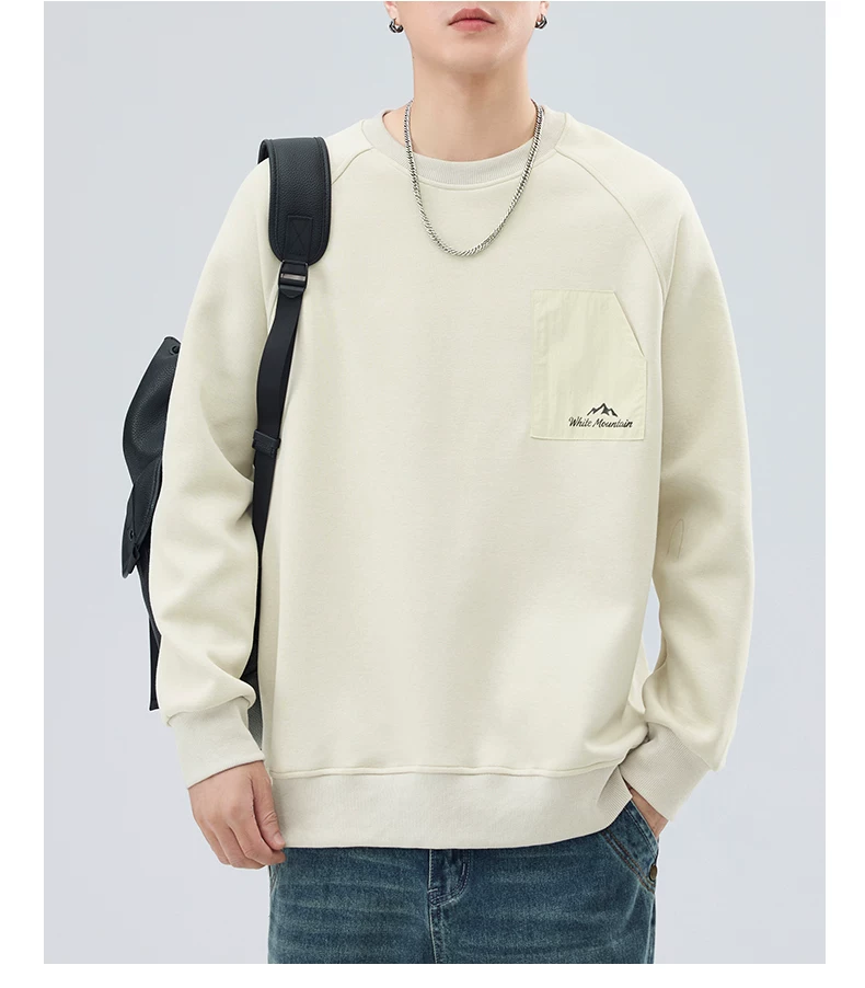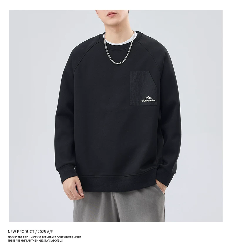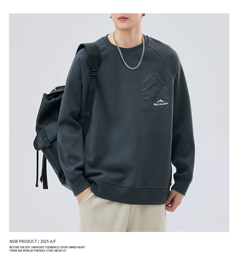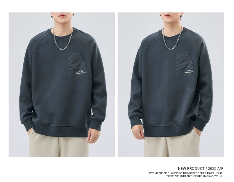 - Áo len tay raglan hạng nặng OMZM300G dành cho nam, áo chui đầu dài tay có túi thêu phong cách Mỹ mùa thu không có mũ trùm đầu.