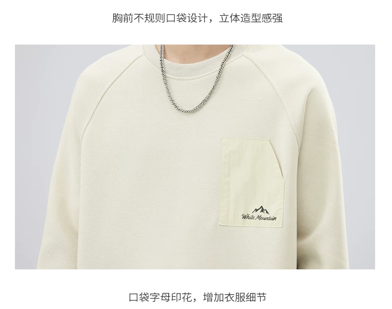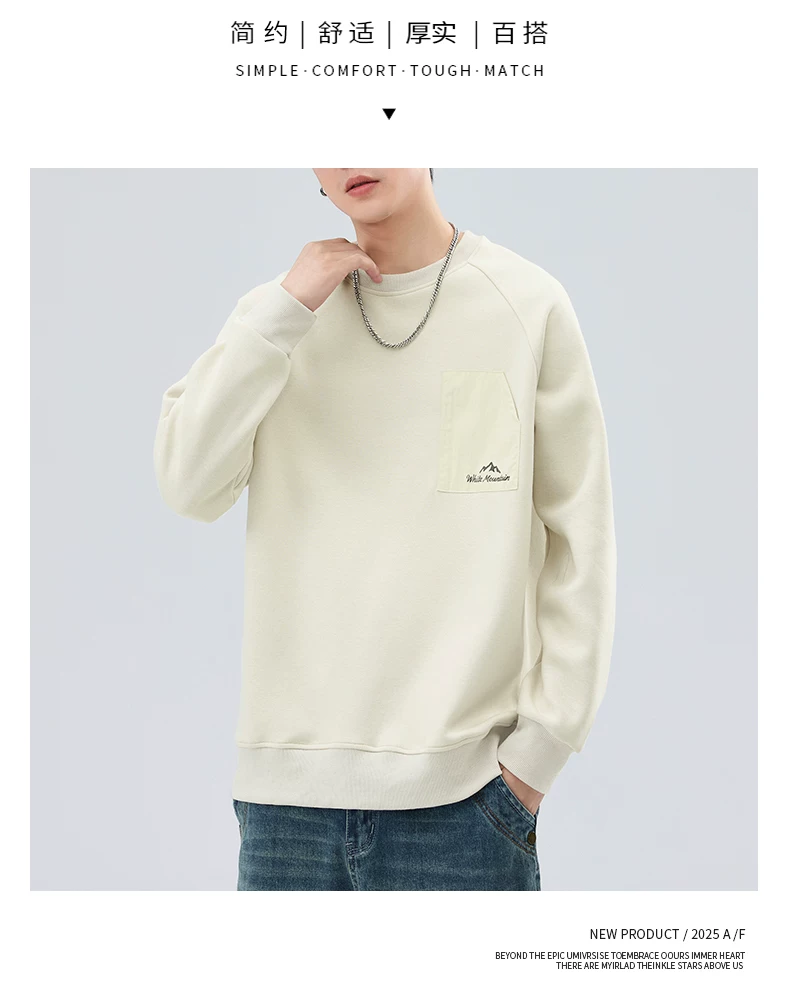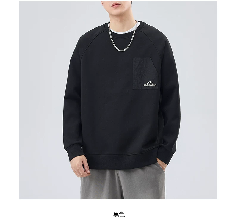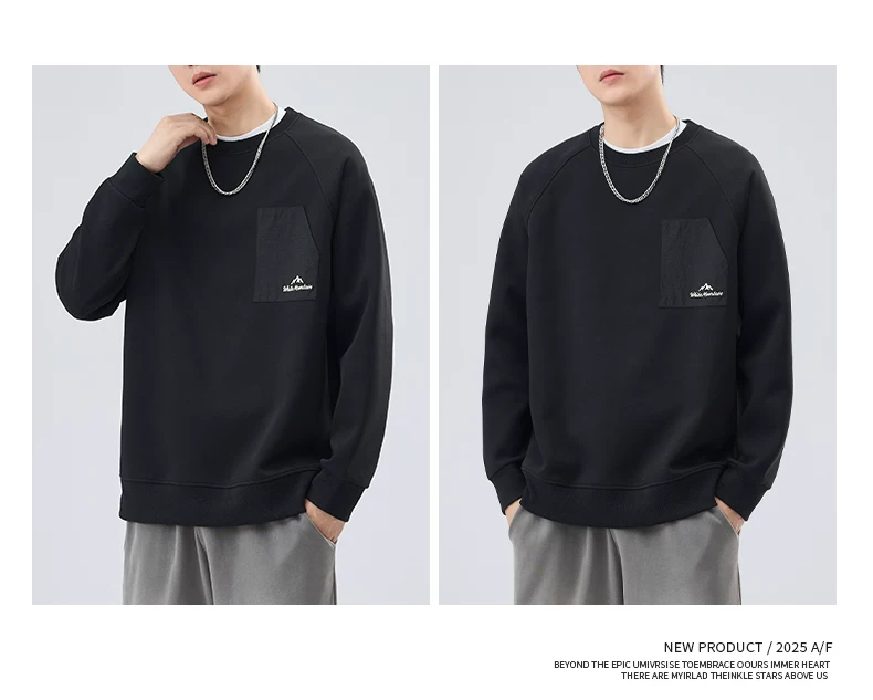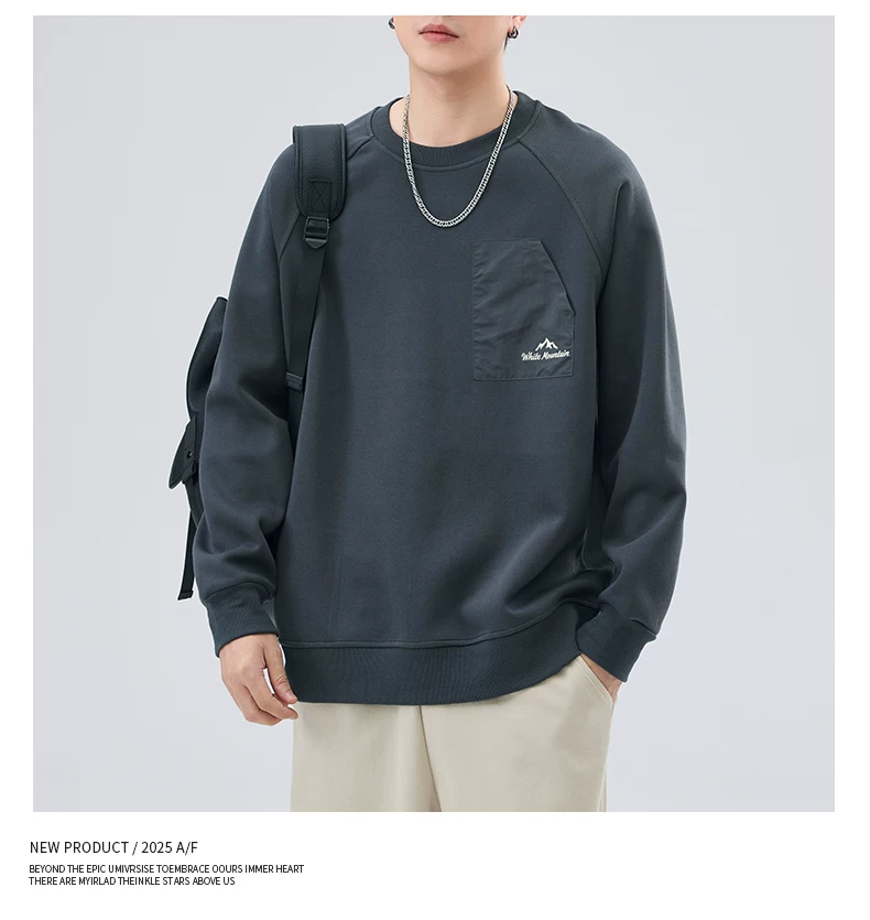 - Áo len tay raglan hạng nặng OMZM300G dành cho nam, áo chui đầu dài tay có túi thêu phong cách Mỹ mùa thu không có mũ trùm đầu.