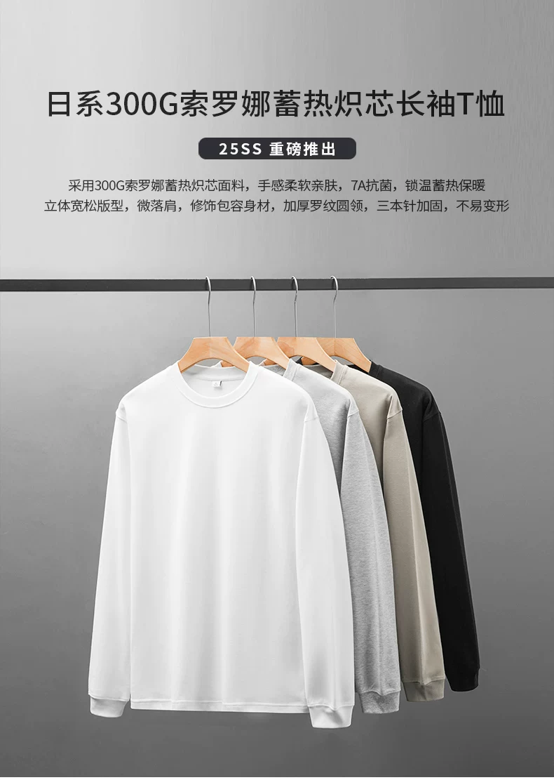 Áo lót giữ nhiệt dài tay Sorona 300g cho nam, mùa thu đông, áo thun lót trong màu trắng chải kỹ giữ ấm