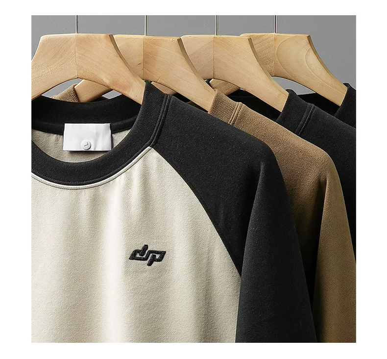 - Áo lót giữ nhiệt tay raglan hạng nặng OMZM dành cho nam, mùa thu đông 2025, áo lót giữ ấm, tay dài, áo thun thêu phối màu.