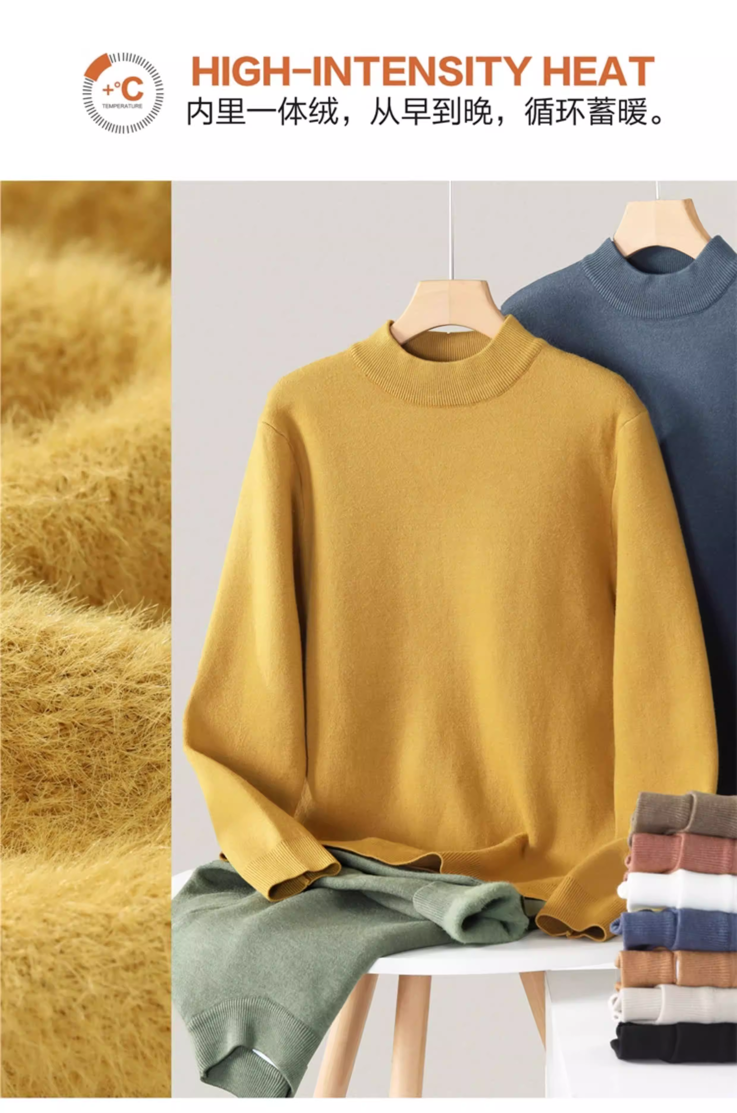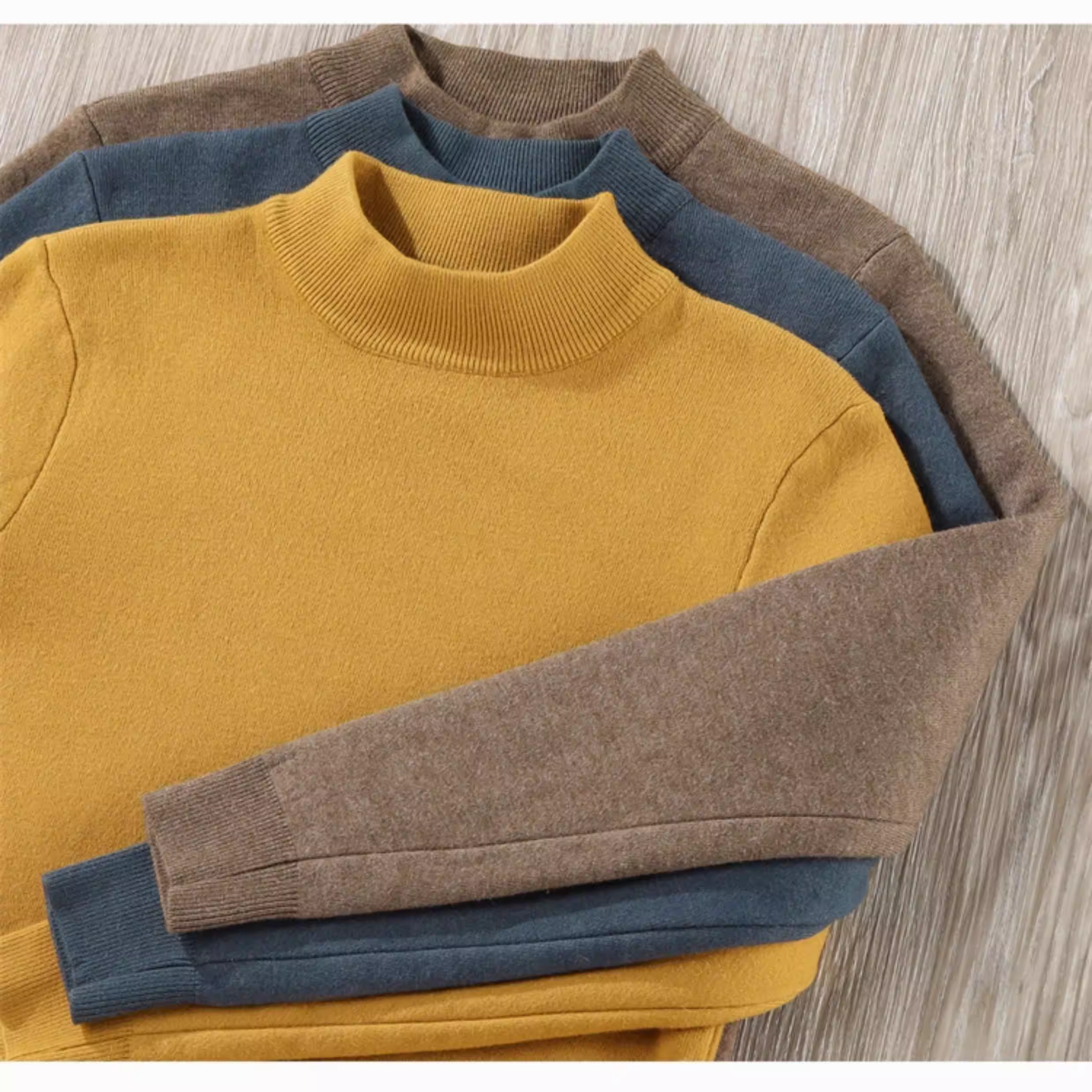 Áo lót lông cừu một mảnh màu macaron thân thiện với da Jieyi dành cho nam, trang phục mặc bên trong ấm áp, cổ cao nửa cổ, lót lông cừu, áo len dệt kim dày.