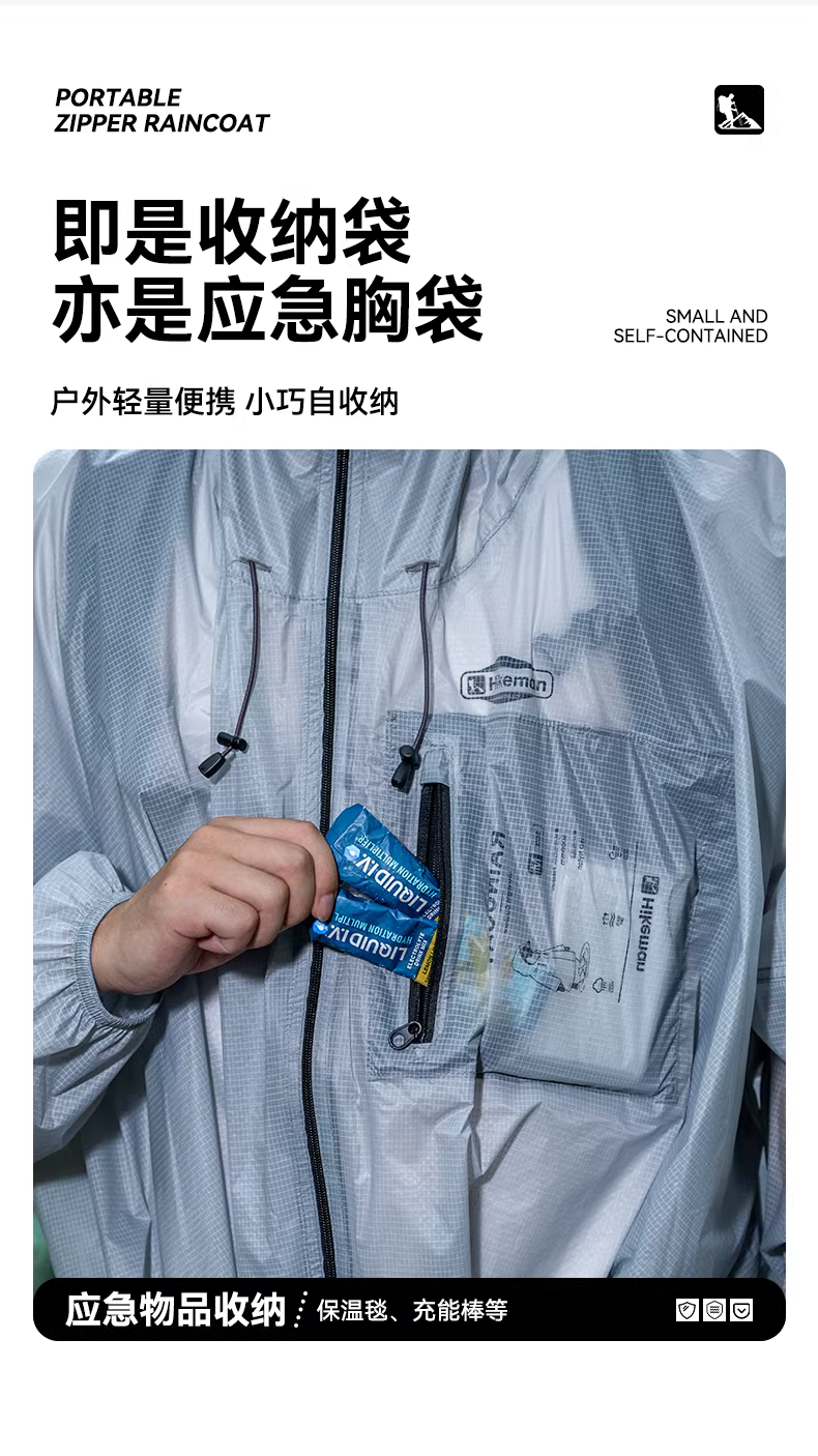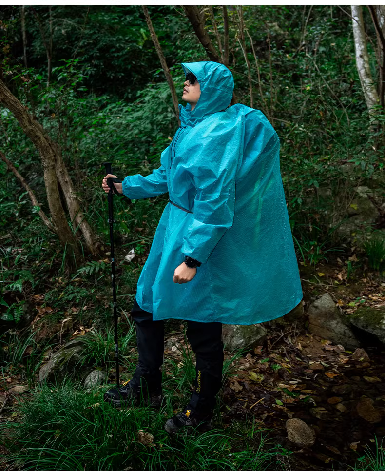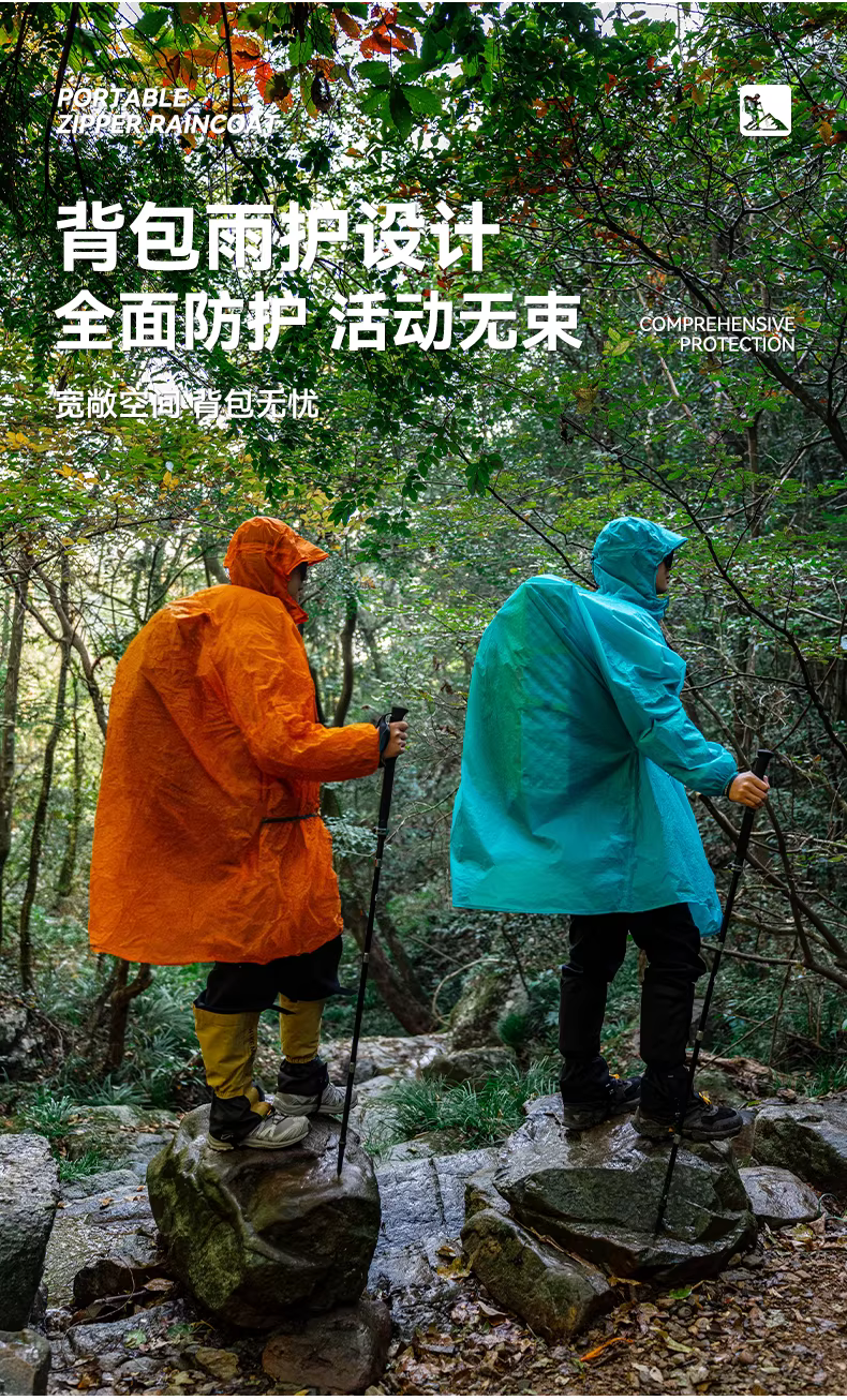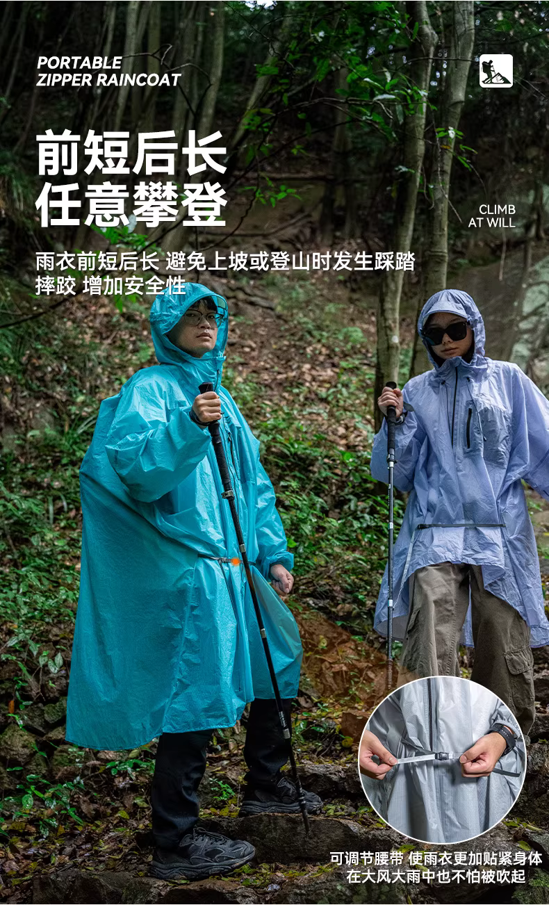 Áo mưa đi bộ đường dài có khóa kéo, áo mưa du lịch chống gió toàn thân và chống mưa bão, chất liệu silicon nhẹ, di động, kiểu balo