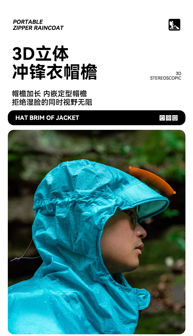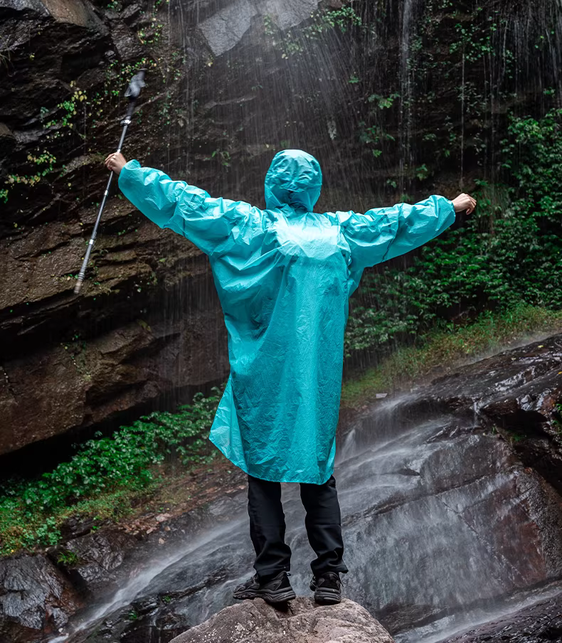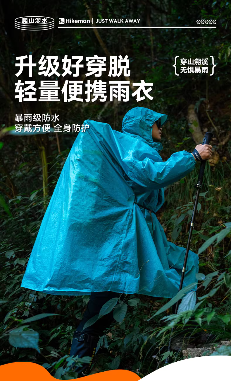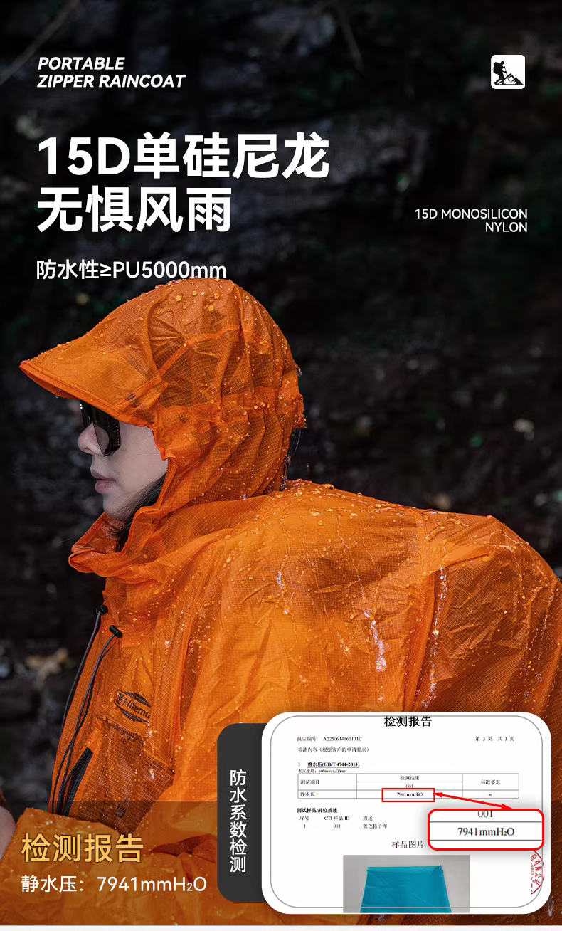 Áo mưa đi bộ đường dài có khóa kéo, áo mưa du lịch chống gió toàn thân và chống mưa bão, chất liệu silicon nhẹ, di động, kiểu balo
