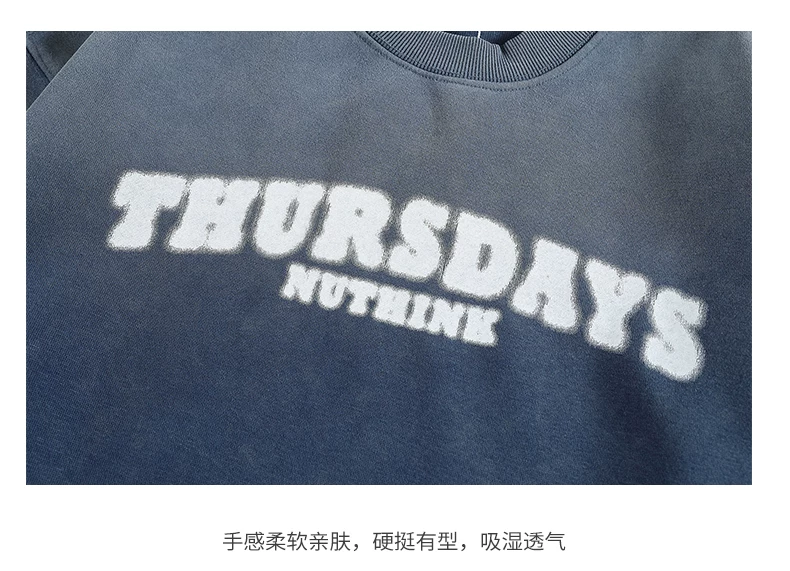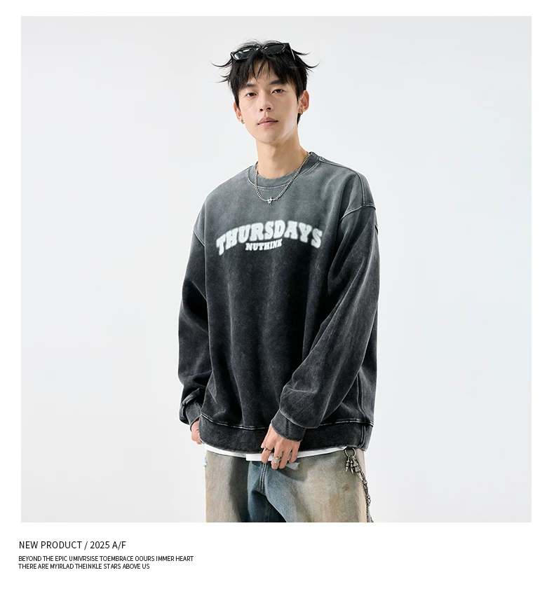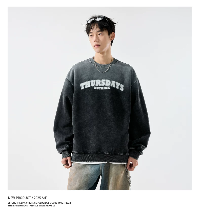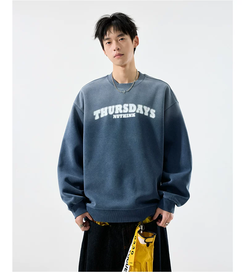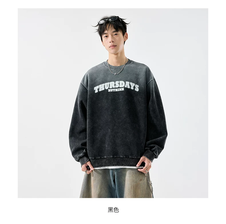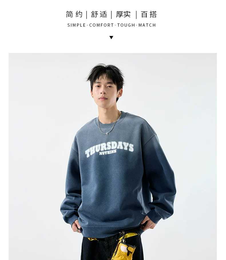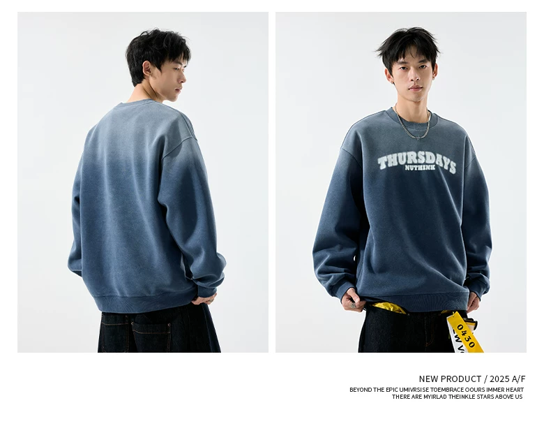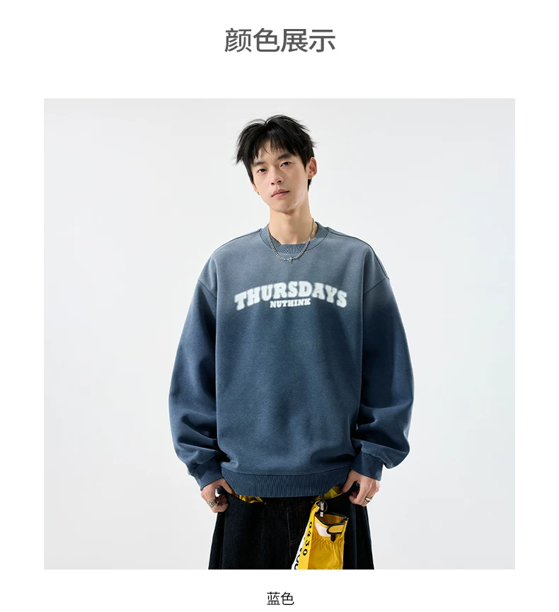 - Áo nỉ batik hạng nặng OMZM400G dành cho nam, áo sơ mi cổ tròn in họa tiết gradient phong cách Mỹ mùa thu, áo khoác dài tay dáng rộng