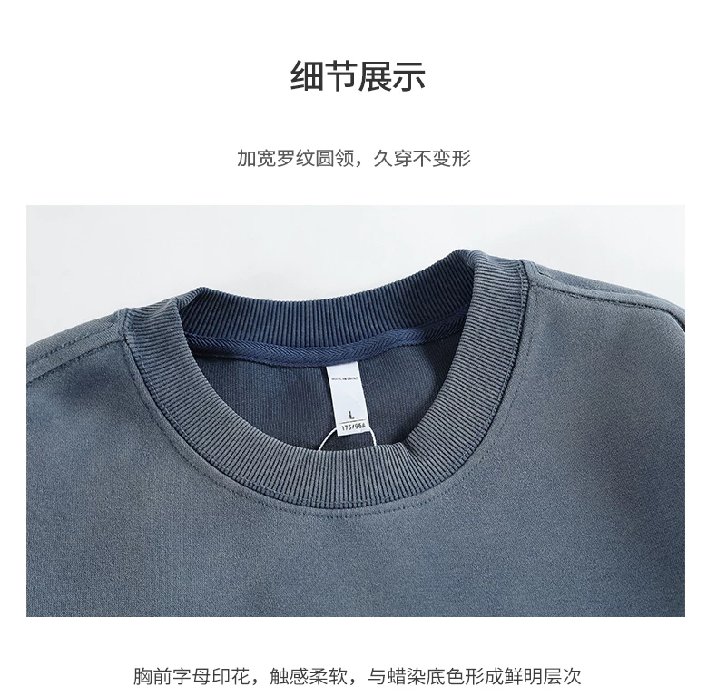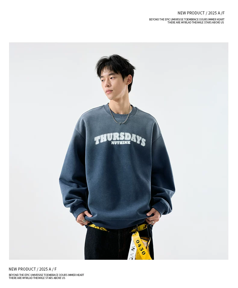 Áo nỉ batik hạng nặng OMZM400G dành cho nam, áo sơ mi cổ tròn in họa tiết gradient phong cách Mỹ mùa thu, áo khoác dài tay dáng rộng