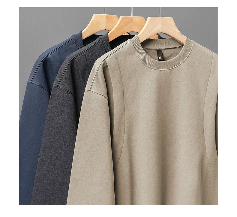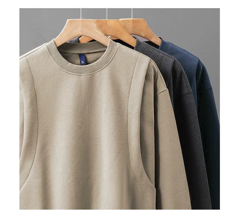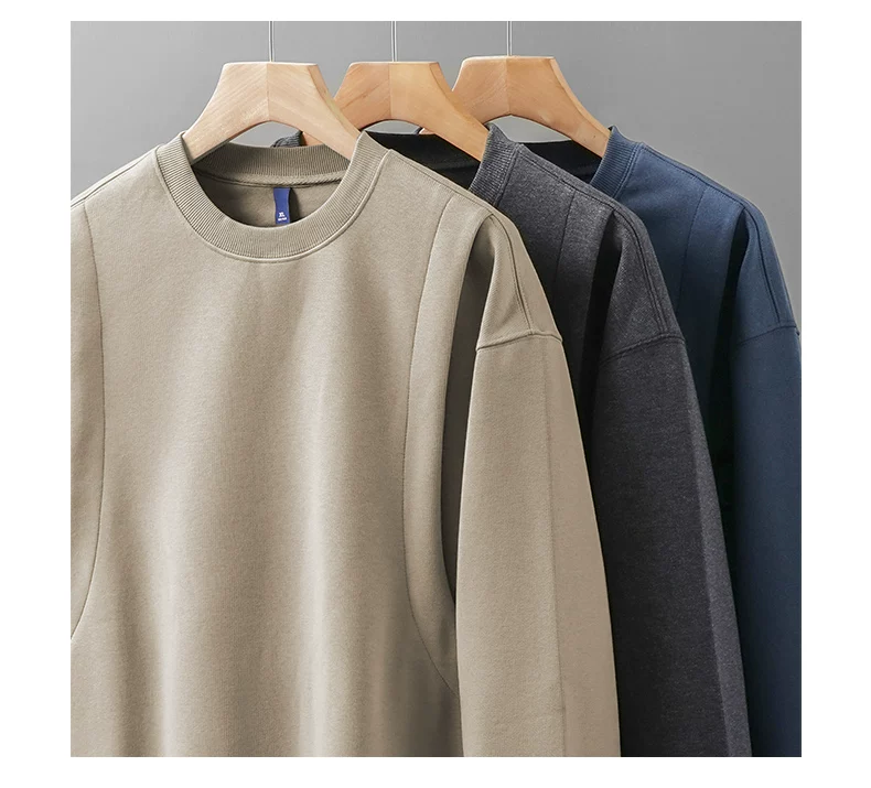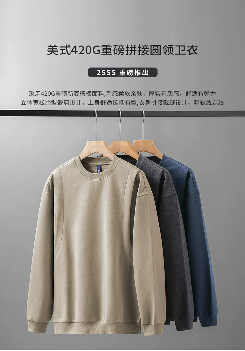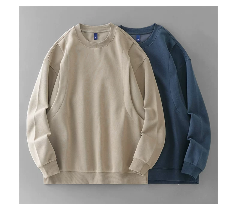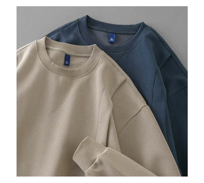 - Áo nỉ chắp vá hạng nặng OMZM420G dành cho nam, áo chui đầu không mũ kiểu Mỹ cổ điển mùa thu, áo sơ mi cổ tròn dáng rộng