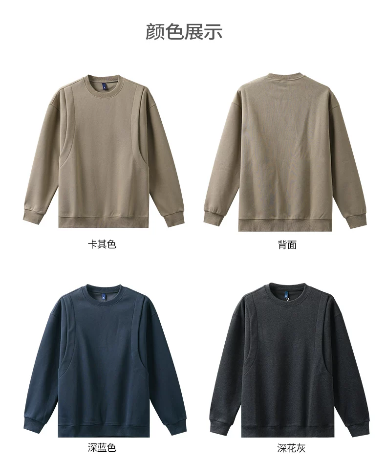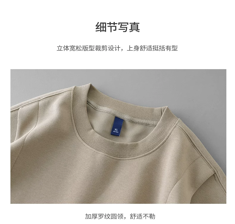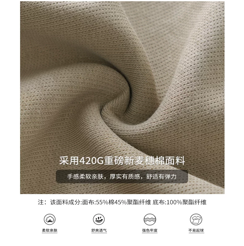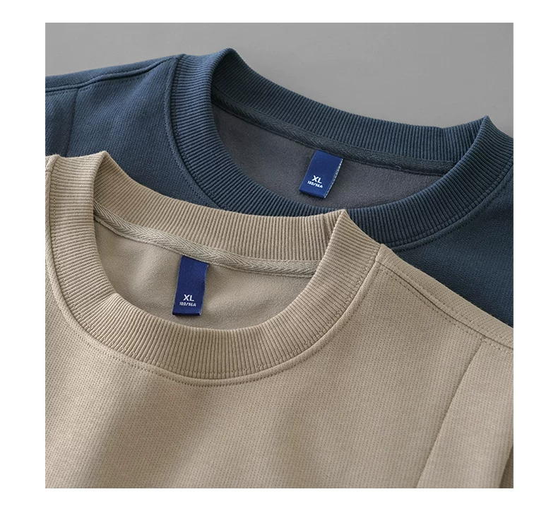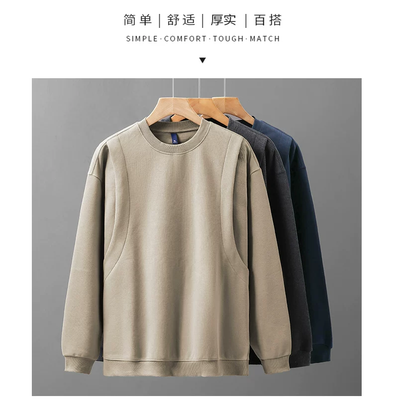 - Áo nỉ chắp vá hạng nặng OMZM420G dành cho nam, áo chui đầu không mũ kiểu Mỹ cổ điển mùa thu, áo sơ mi cổ tròn dáng rộng
