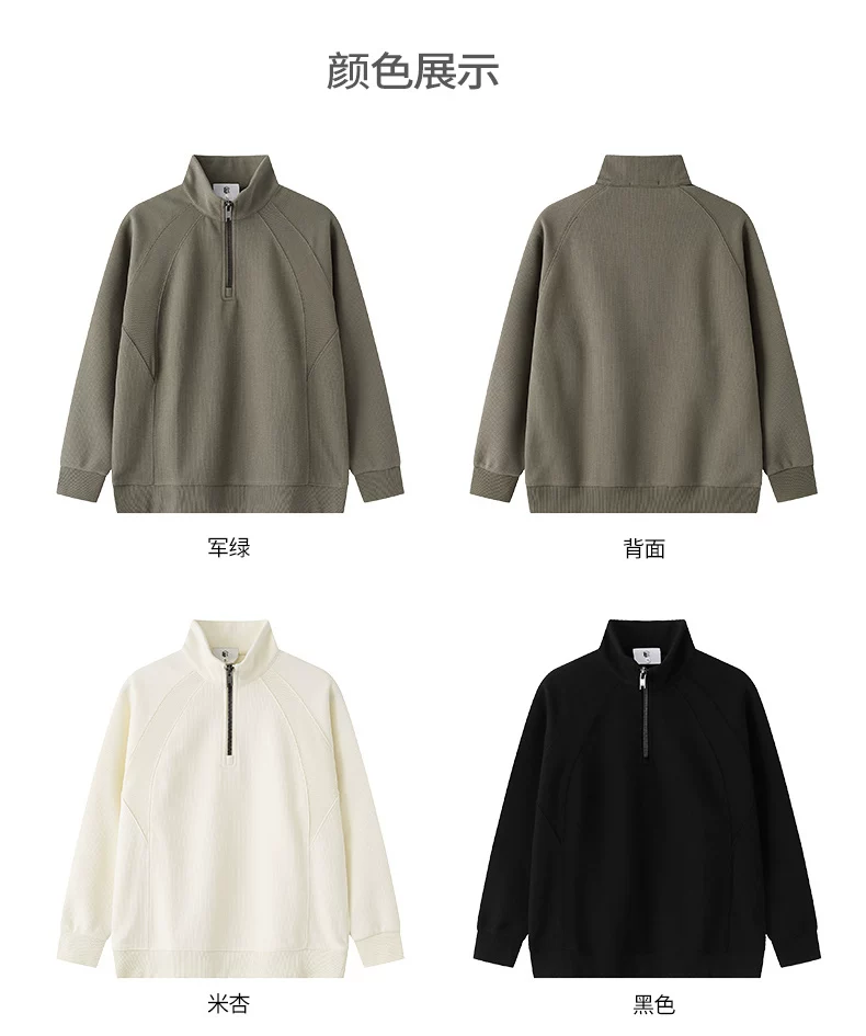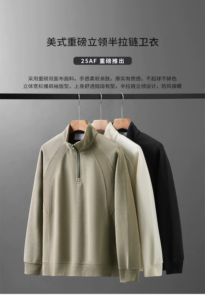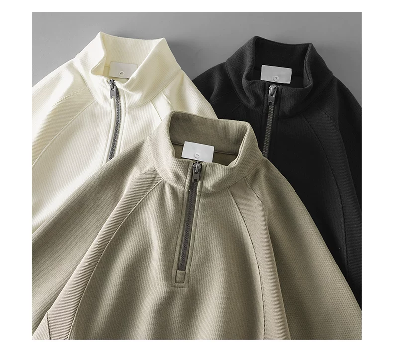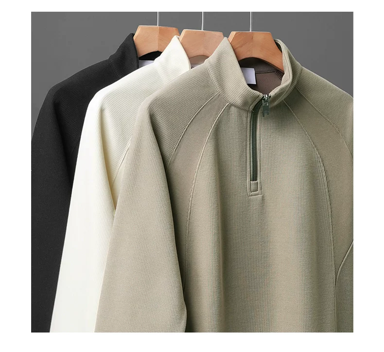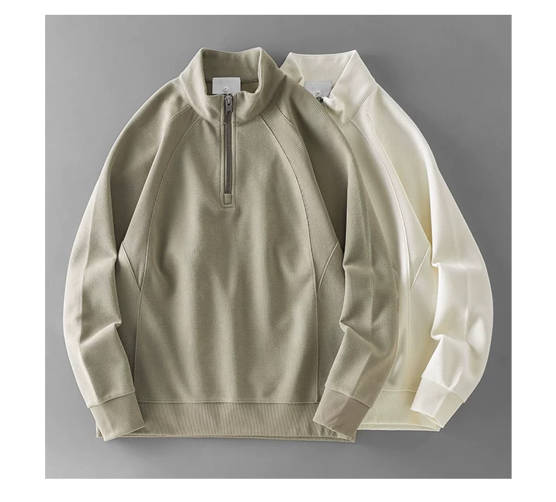 Áo nỉ cổ đứng nửa khóa kéo OMZM dành cho nam, áo sơ mi dài tay dáng rộng kiểu raglan mùa thu, áo chui đầu màu trơn phối vải chắc chắn.