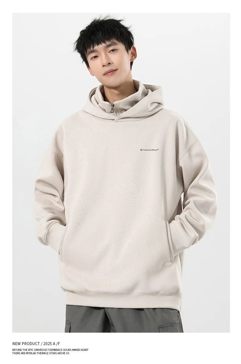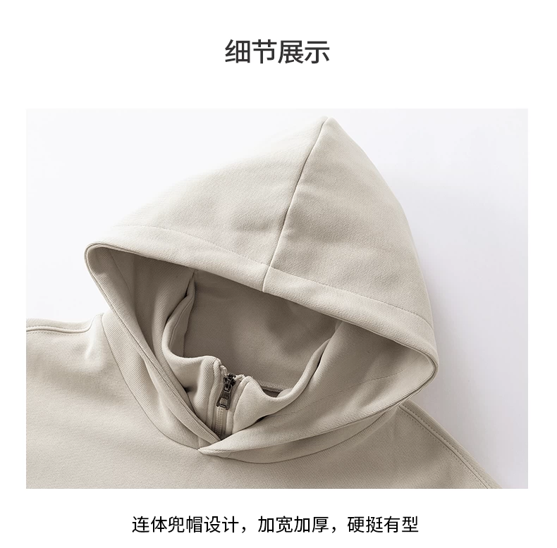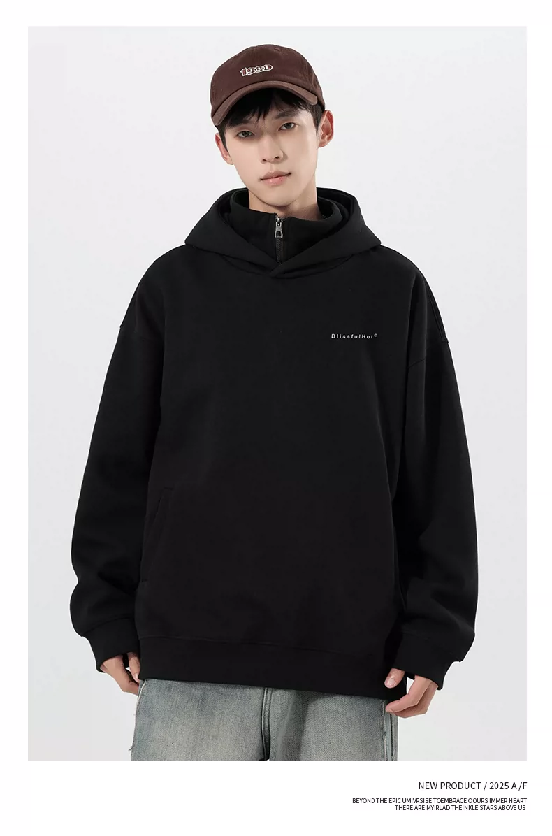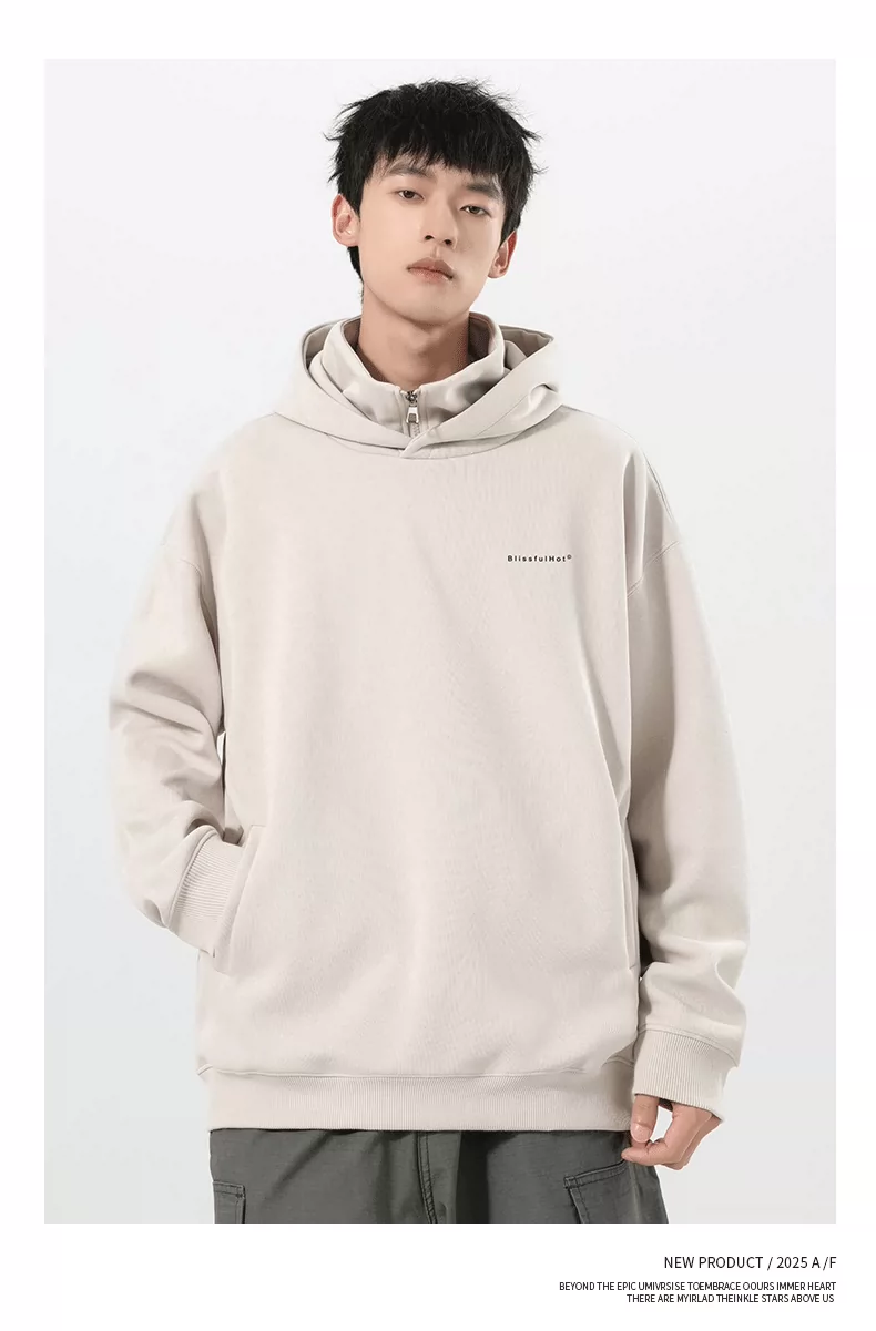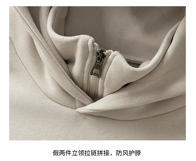 Áo nỉ có mũ giả hai mảnh OMZM dành cho nam, mùa thu đông, áo chui đầu in chữ hạng nặng 320G, áo khoác nửa khóa kéo phong cách Mỹ