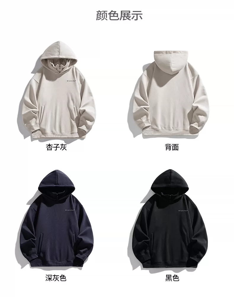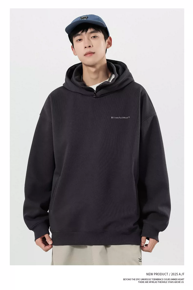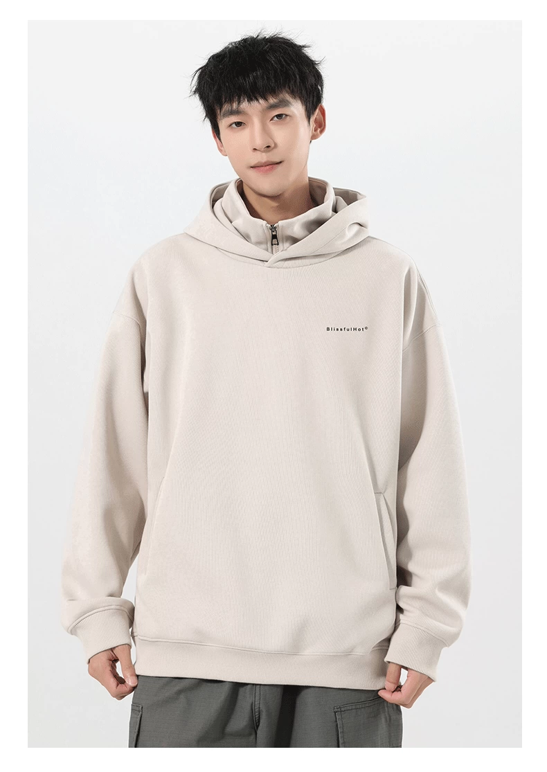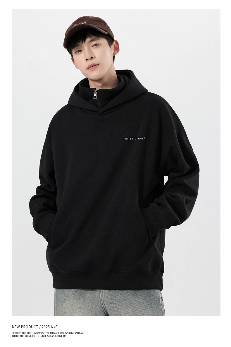 Áo nỉ có mũ giả hai mảnh OMZM dành cho nam, mùa thu đông, áo chui đầu in chữ hạng nặng 320G, áo khoác nửa khóa kéo phong cách Mỹ