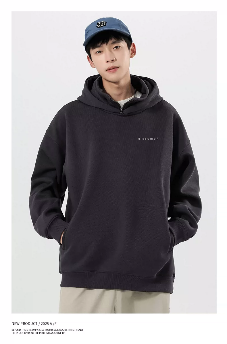 - Áo nỉ có mũ giả hai mảnh OMZM dành cho nam, mùa thu đông, áo chui đầu in chữ hạng nặng 320G, áo khoác nửa khóa kéo phong cách Mỹ