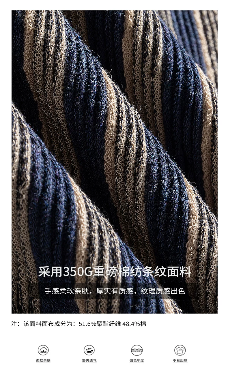 - Áo nỉ cổ tròn sọc nặng ký OMZM350G dành cho nam, áo sơ mi dài tay phối màu cổ điển kiểu Mỹ mùa thu đông, áo khoác rộng