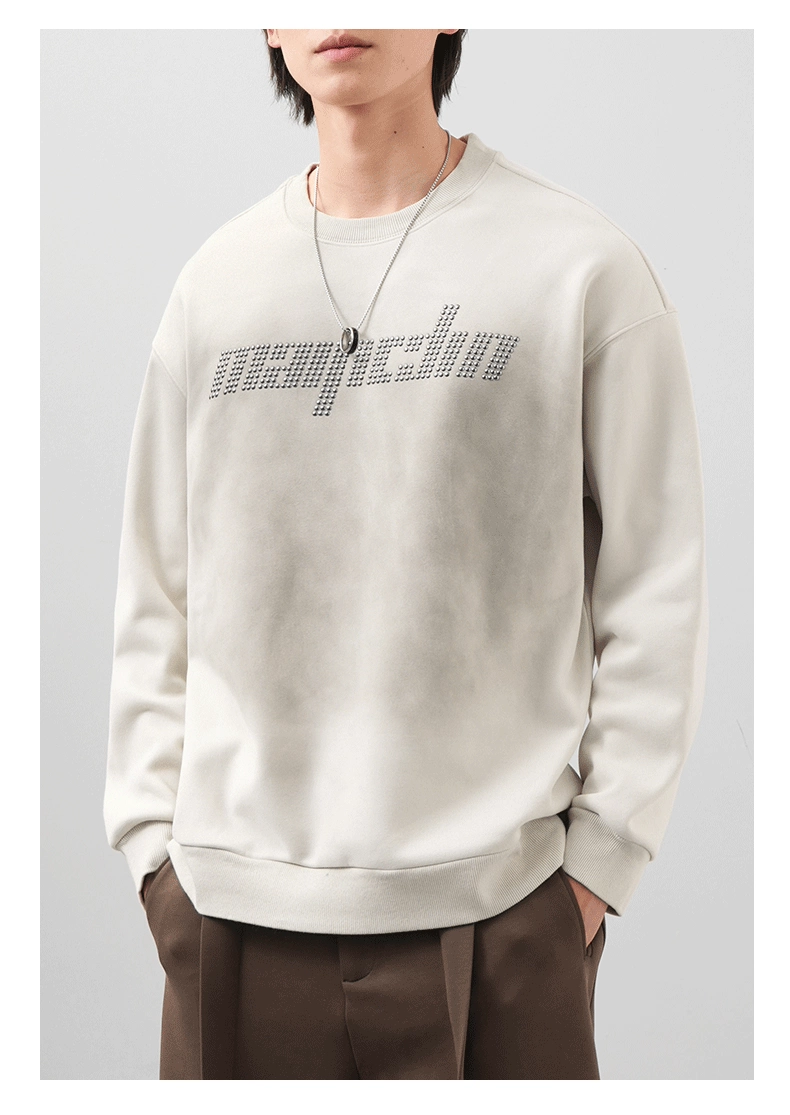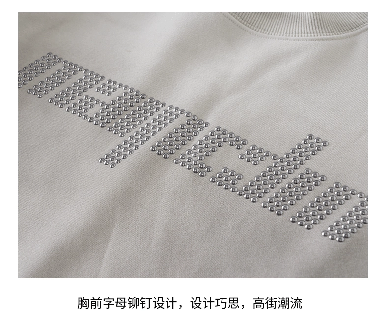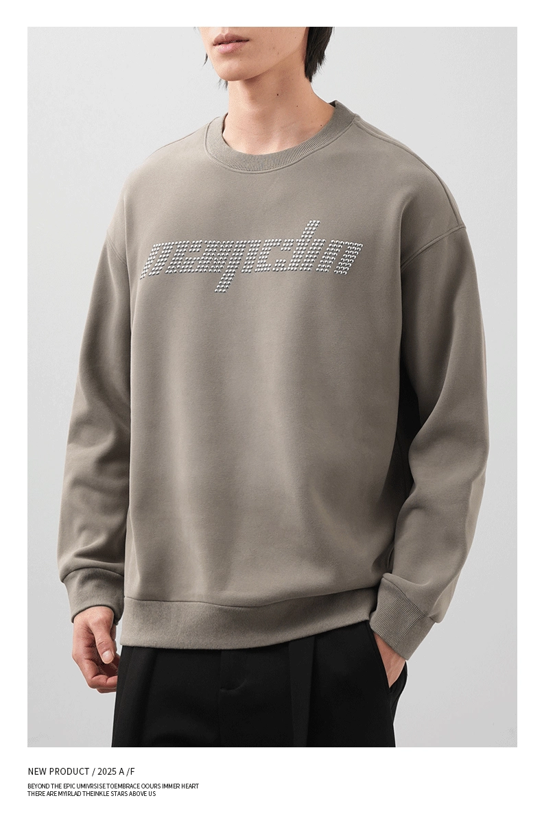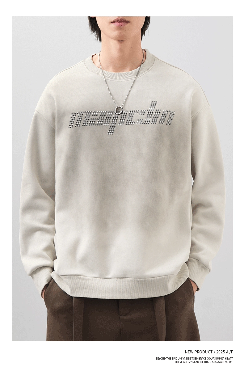 Áo nỉ dày lót lông cừu OMZM dành cho nam, thiết kế đính đinh cao cấp mùa đông, lớp bên trong rộng thùng thình dài tay, áo lót ấm áp.