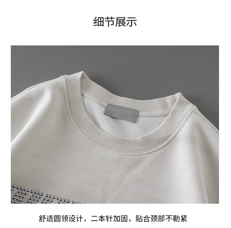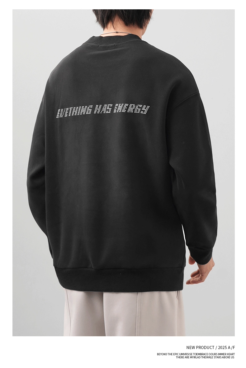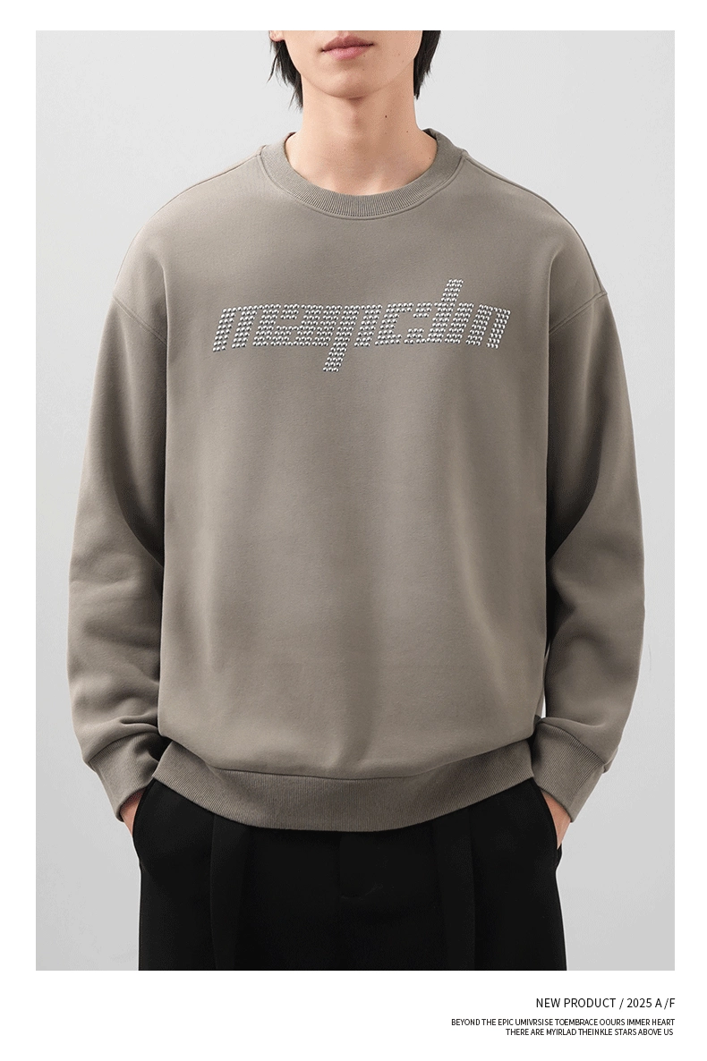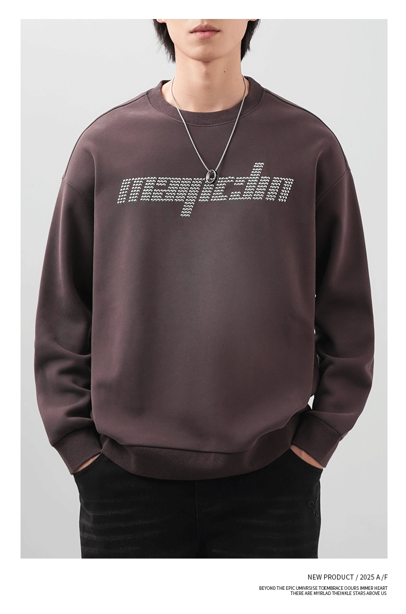 Áo nỉ dày lót lông cừu OMZM dành cho nam, thiết kế đính đinh cao cấp mùa đông, lớp bên trong rộng thùng thình dài tay, áo lót ấm áp.