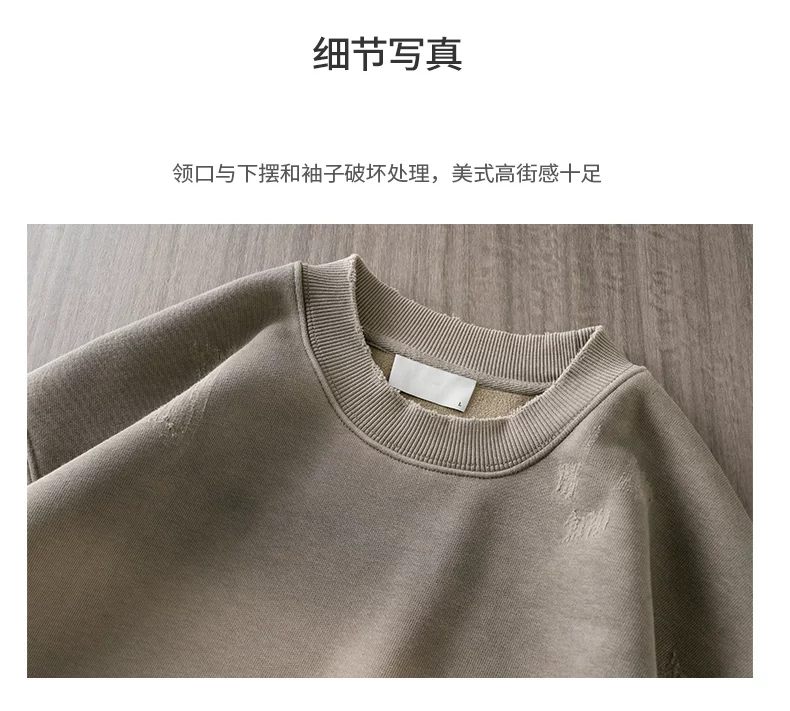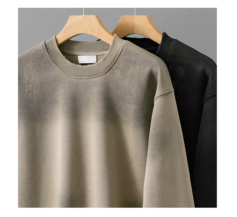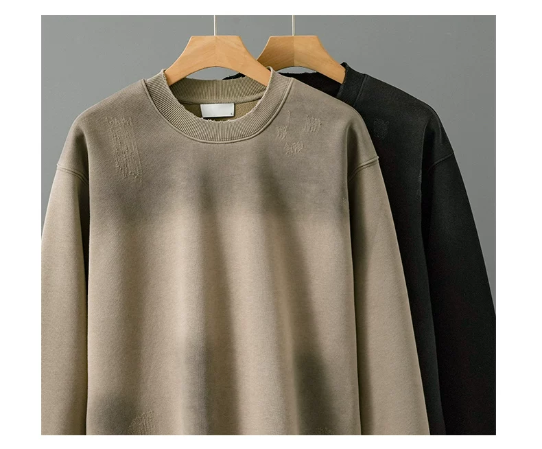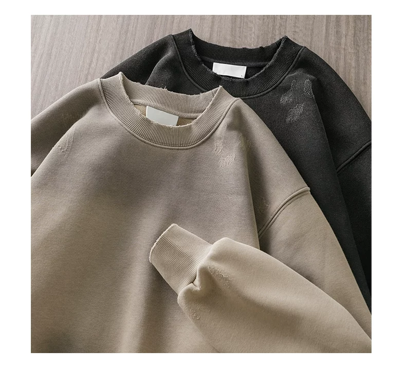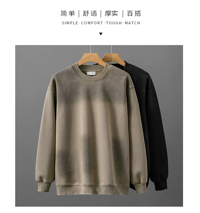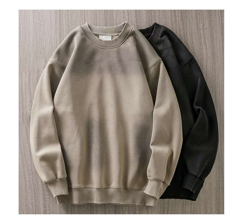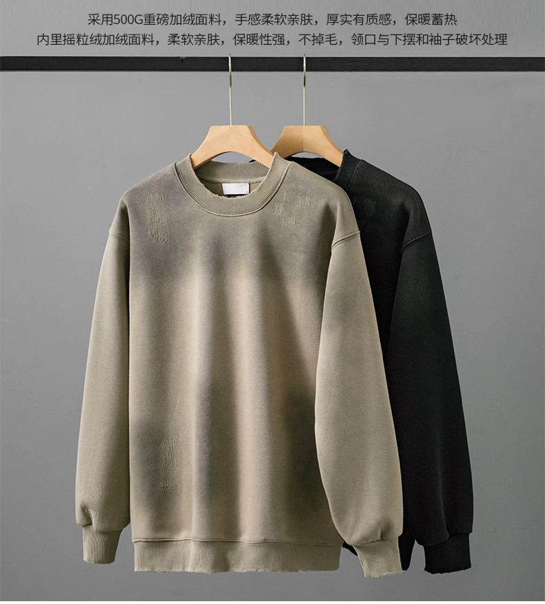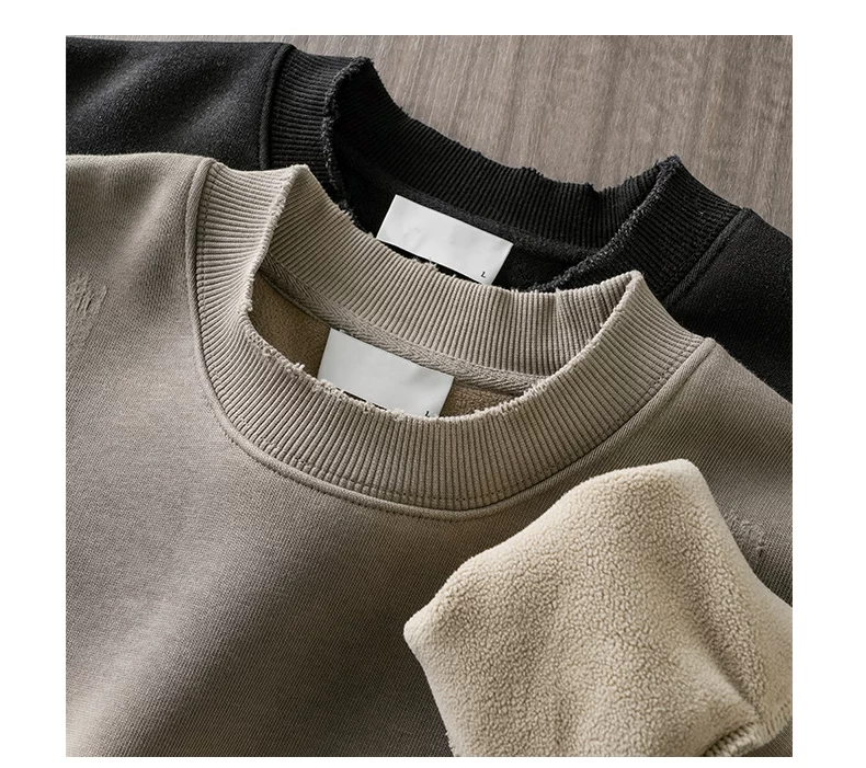 Áo nỉ hạng nặng OMZM500G dành cho nam, áo sơ mi cổ tròn dày dặn ấm áp mùa thu đông, áo khoác kiểu Mỹ cổ điển.