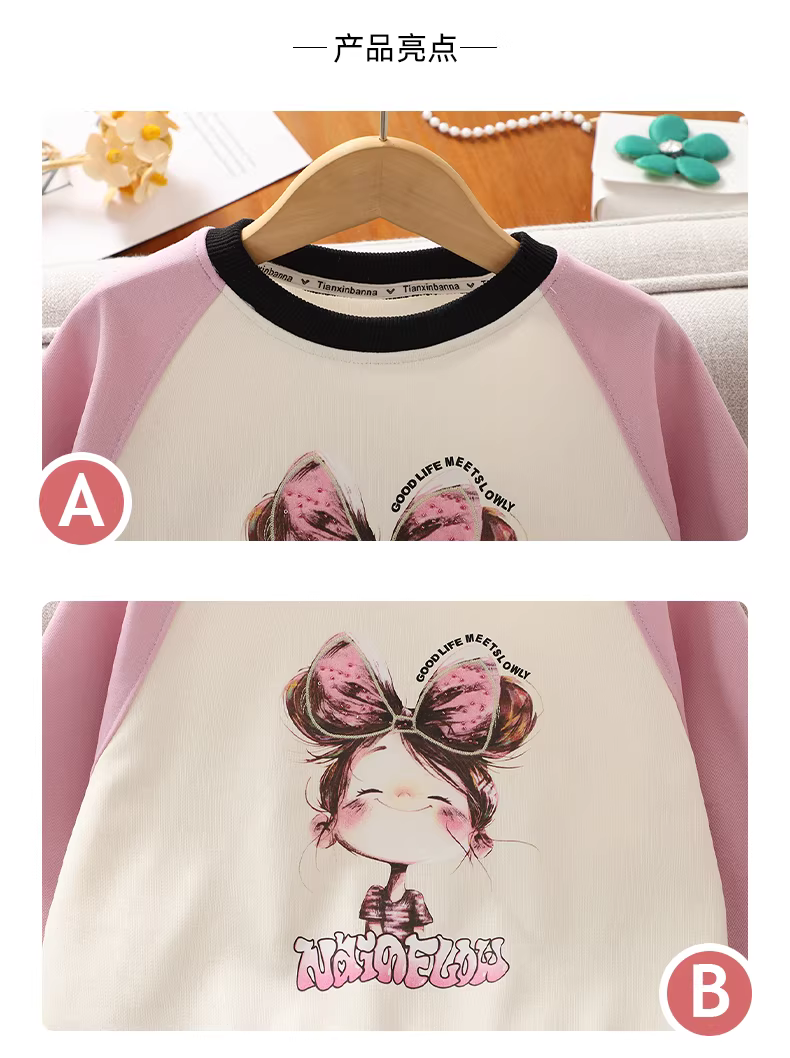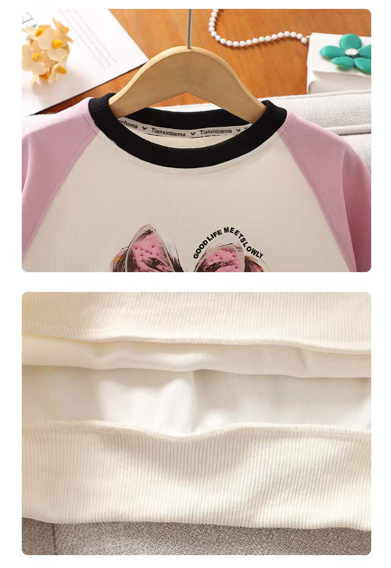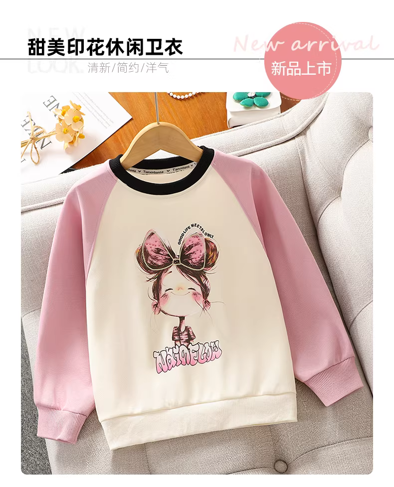 - Áo nỉ in hình nơ cho bé gái, kiểu mới thu đông 2025, áo kiểu rộng rãi, áo len mặc thường ngày cho trẻ em