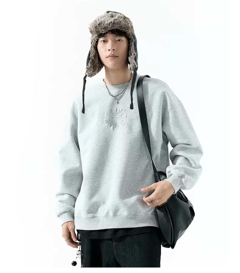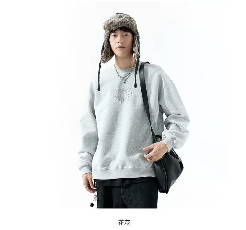 - Áo nỉ in họa tiết nặng bền Pure Group 450G dành cho nam, mùa thu đông, kiểu dáng Mỹ, thời trang, dáng rộng, cổ tròn, áo chui đầu ngoại cỡ không mũ.