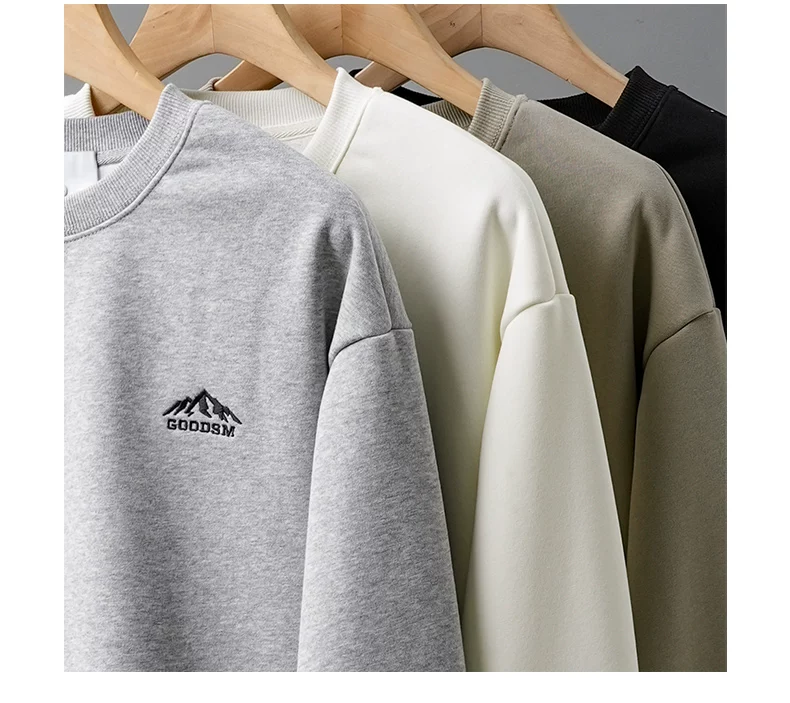 - Áo nỉ lông cừu hạng nặng 460G dành cho nam, áo chui đầu mùa thu đông, cổ tròn, áo thun thêu, dày dặn, ấm áp, áo khoác dài tay.