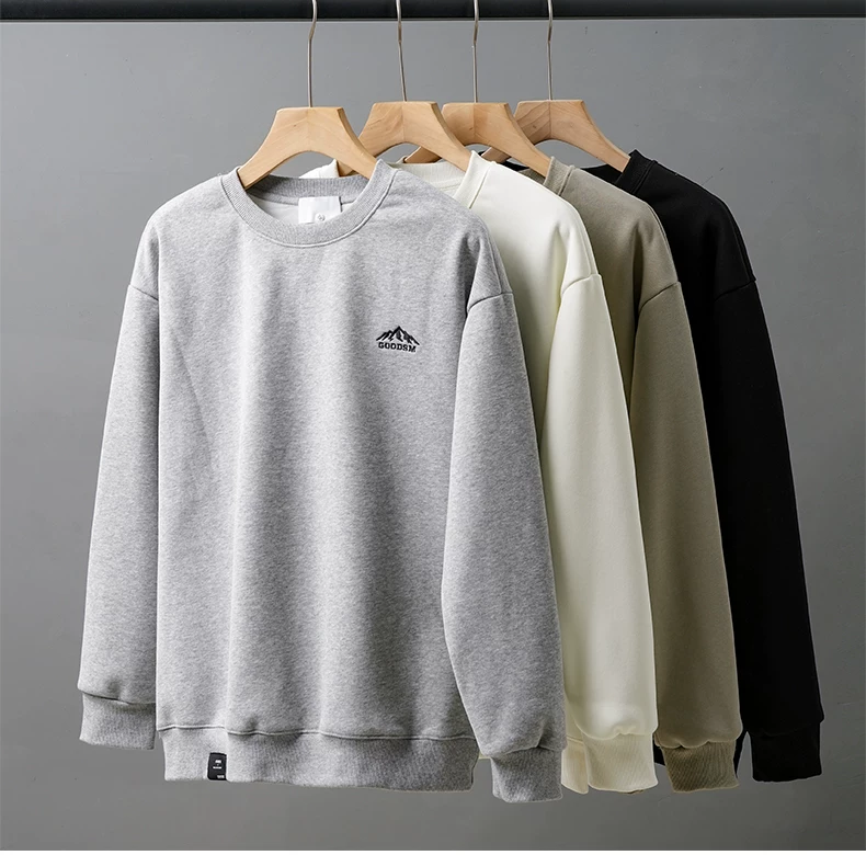 Áo nỉ lông cừu hạng nặng 460G dành cho nam, áo chui đầu mùa thu đông, cổ tròn, áo thun thêu, dày dặn, ấm áp, áo khoác dài tay.