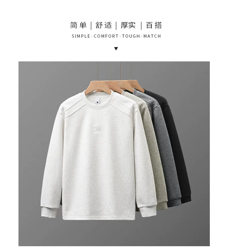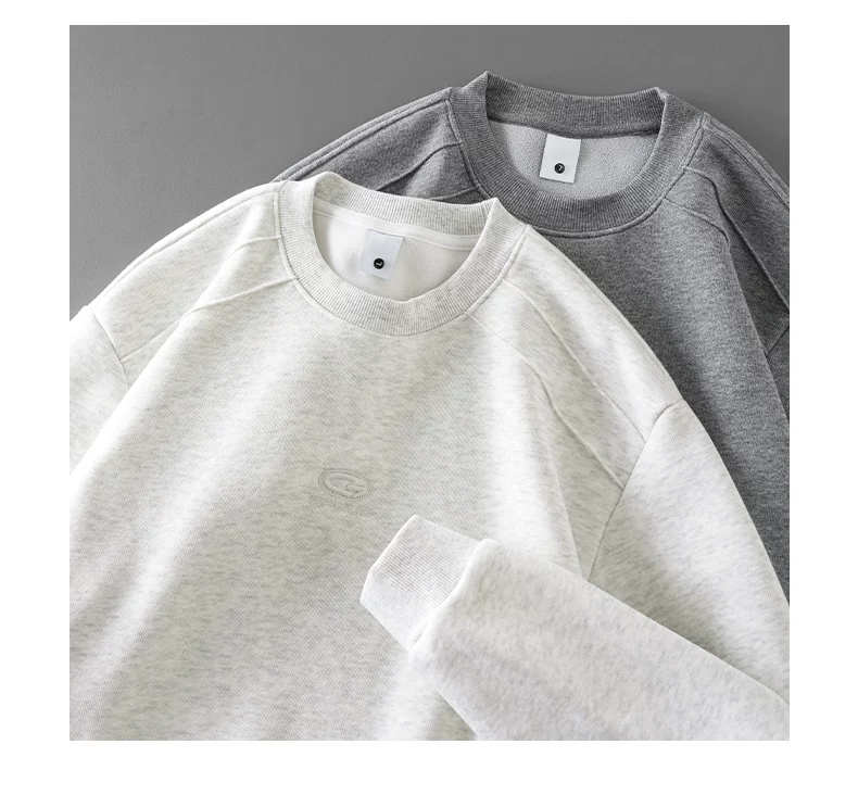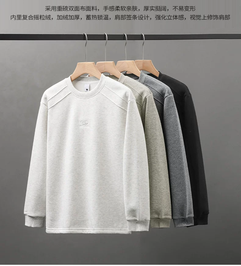 Áo nỉ lông cừu hạng nặng OMZM dành cho nam, phong cách đường phố Mỹ mùa đông, lớp lót dày và ấm áp, dáng rộng, cổ tròn, tay dài thêu.