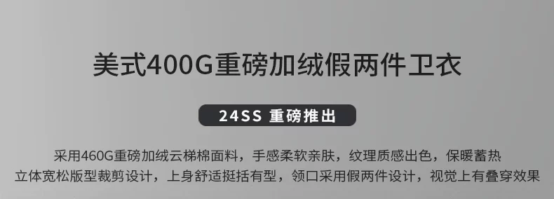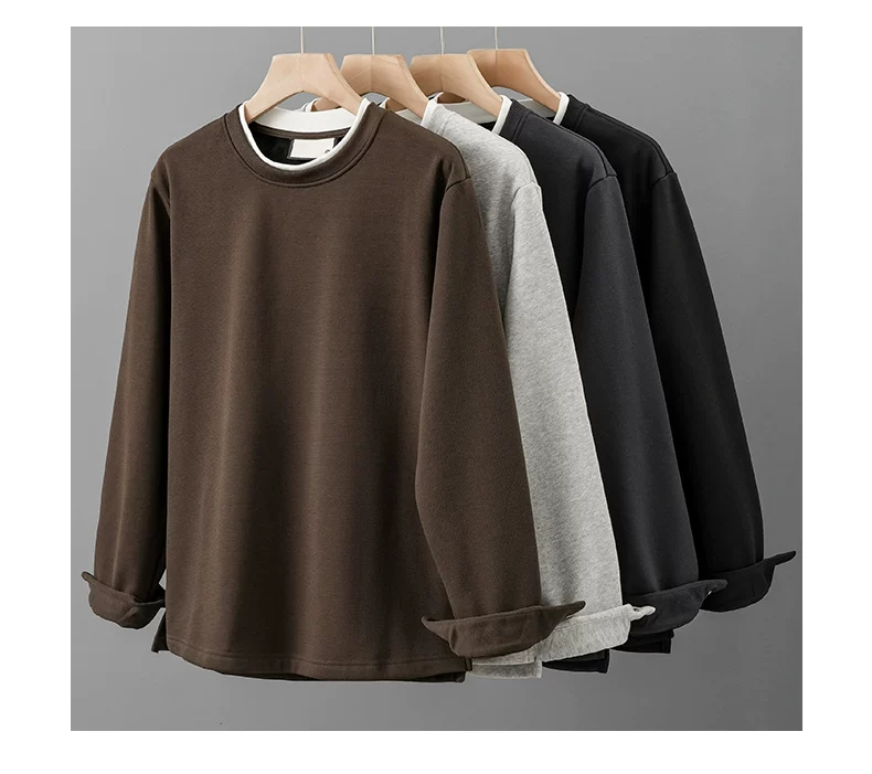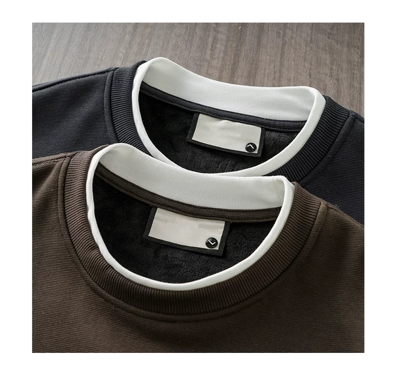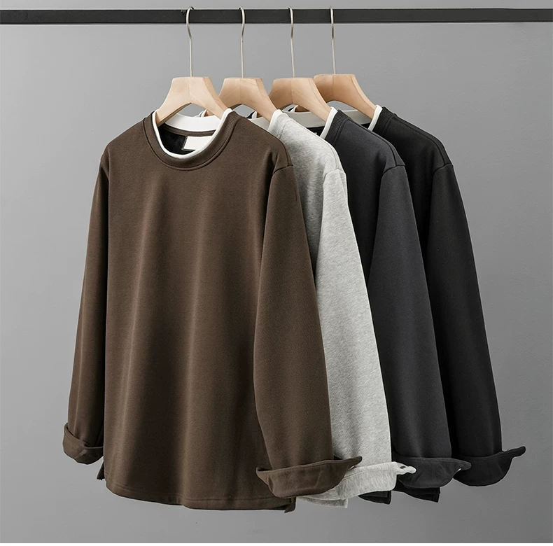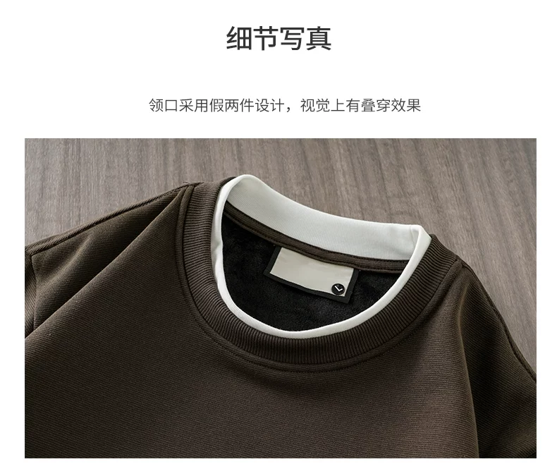 Áo nỉ nam OMZM dày dặn, lót lông, kiểu dáng hai lớp giả, mùa đông 2024, dày dặn, ấm áp, cổ tròn, áo lót