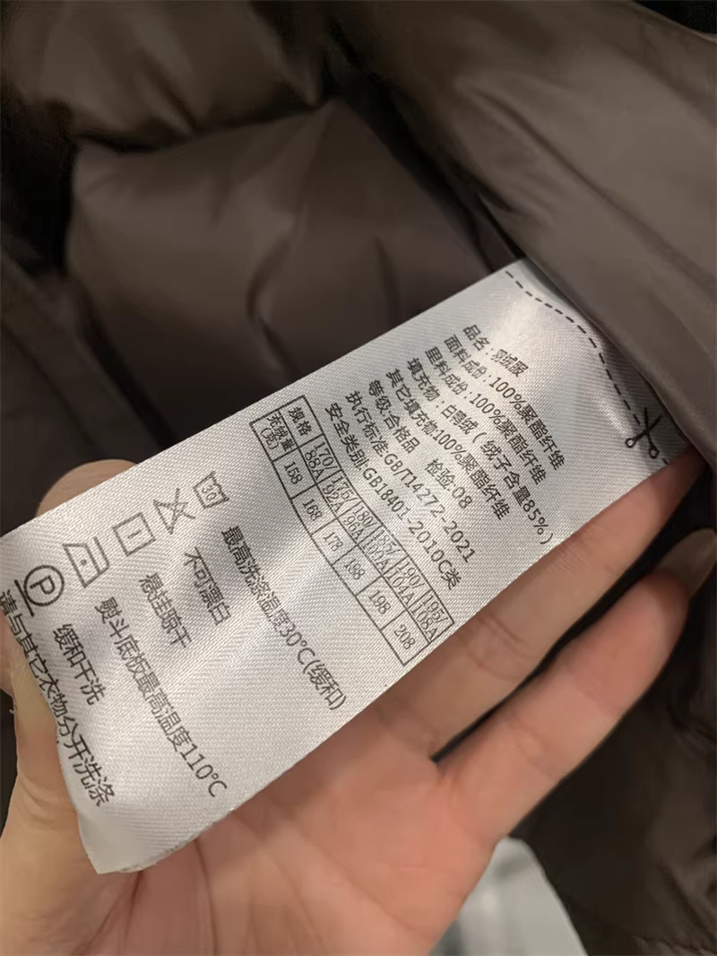 | 170 | 肩宽47.8 | 胸围116 | 袖长58.5 | 衣长63.5 | 充绒量158g |
