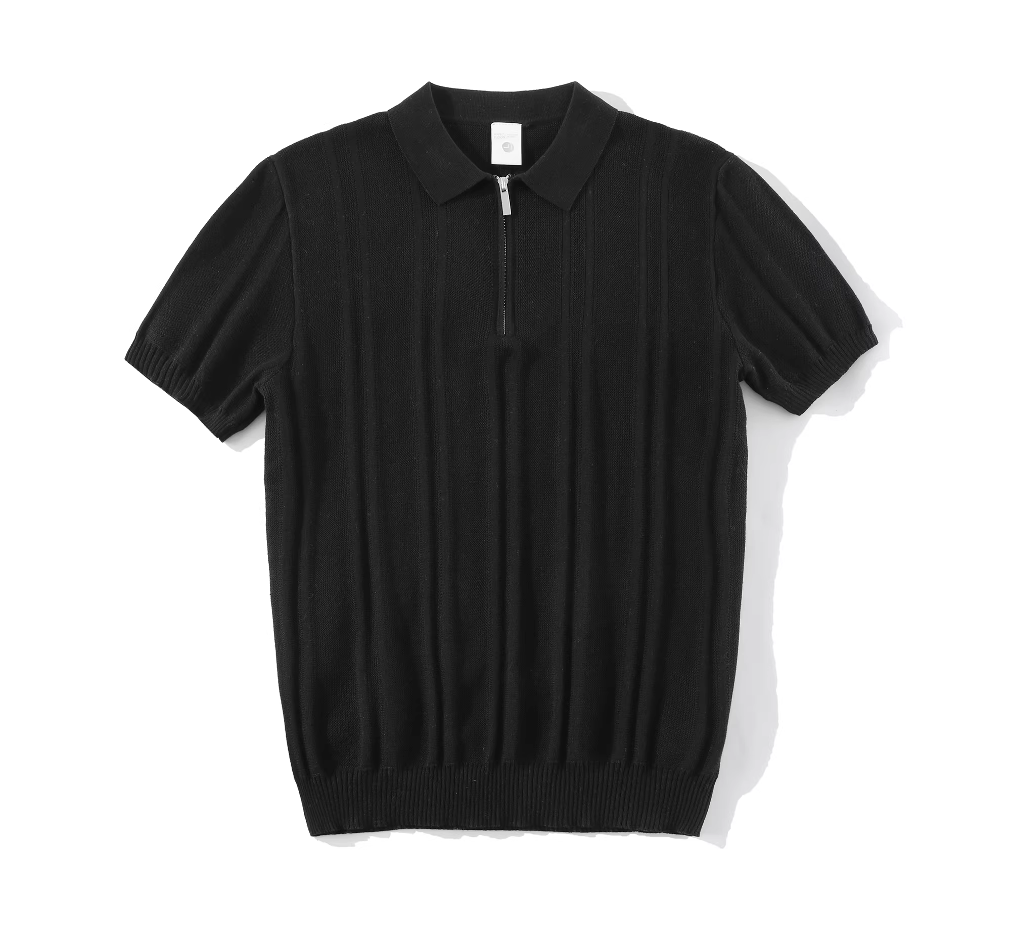 Áo Polo nam JIEYI kiểu dáng quý ông lịch lãm, tay ngắn, phong cách Old Money, chất liệu dệt kim, cổ trụ, kẻ sọc jacquard.