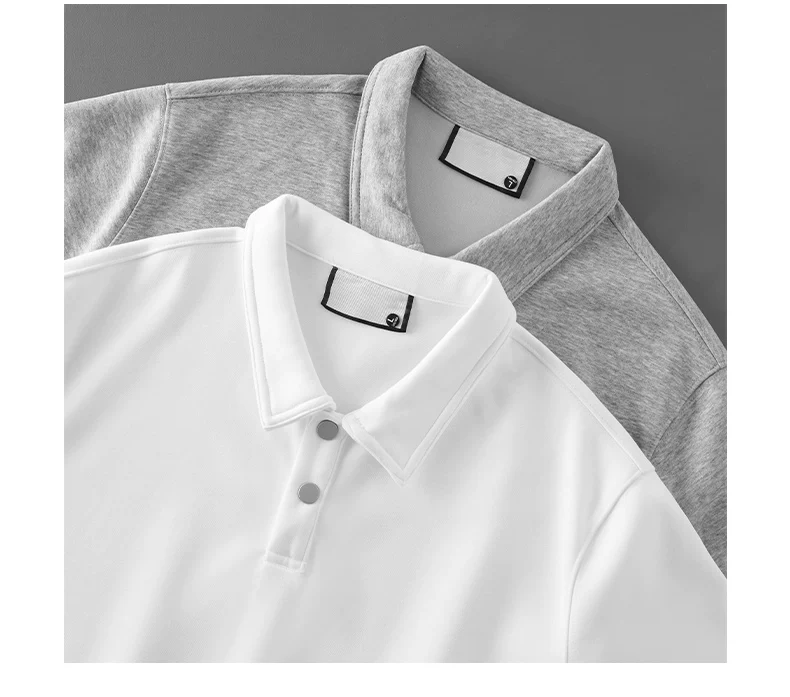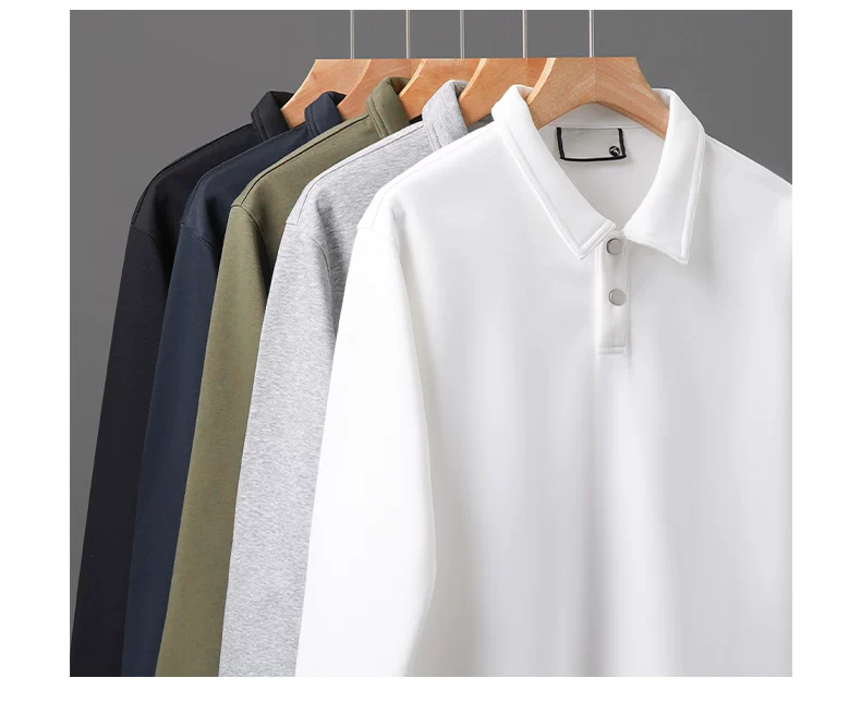 Áo polo nam OMZM300G chất liệu dày dặn, tay dài, kiểu dáng rộng rãi, màu trơn, cổ trụ, phong cách retro Mỹ.