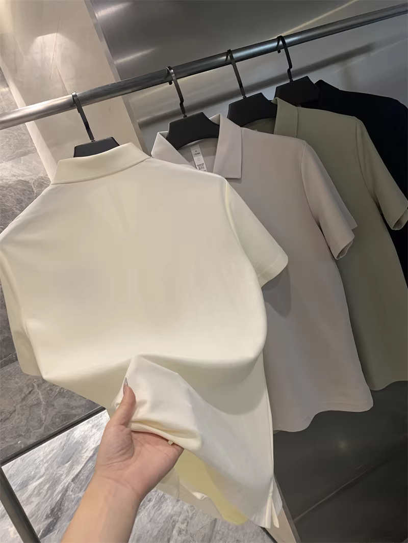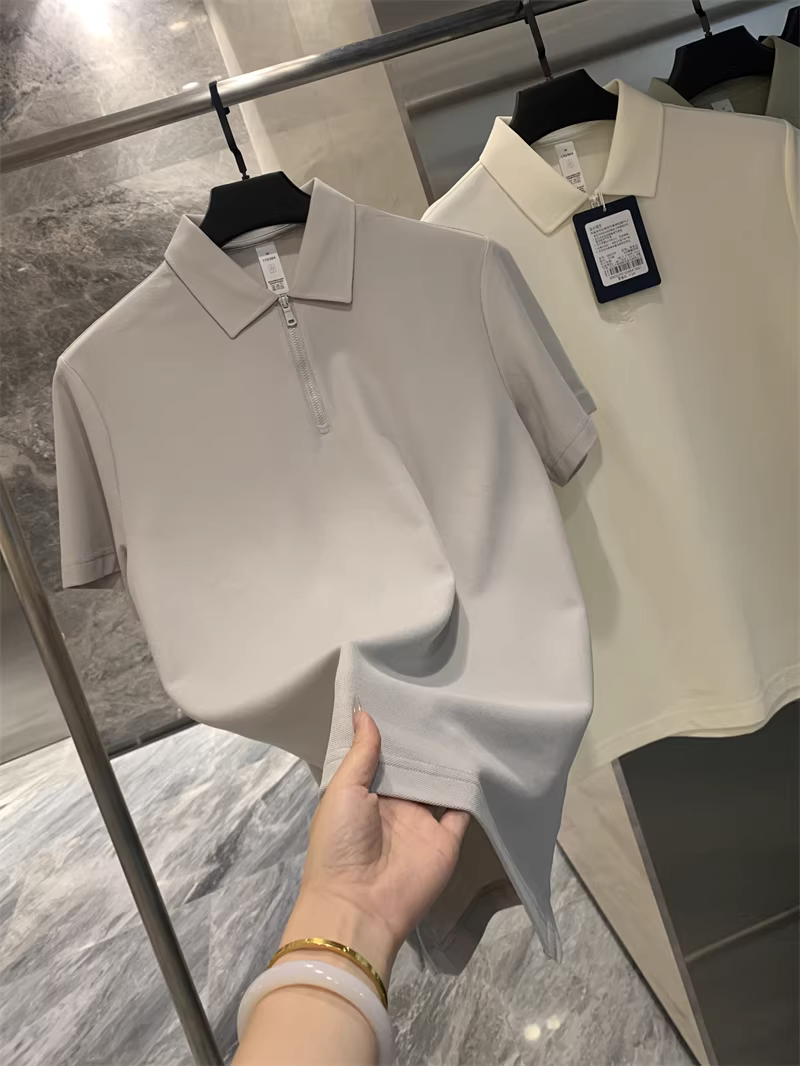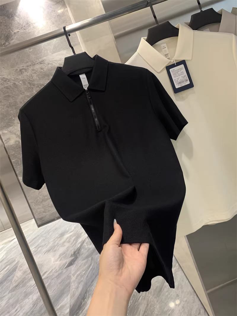 Áo polo nam tay ngắn nửa khóa kéo, chất liệu cotton dài sợi Don Quixote, được xử lý đục lỗ! Mềm mại, tinh tế, thoáng khí, lý tưởng cho mùa hè.