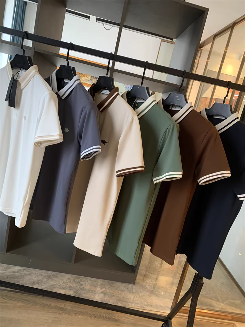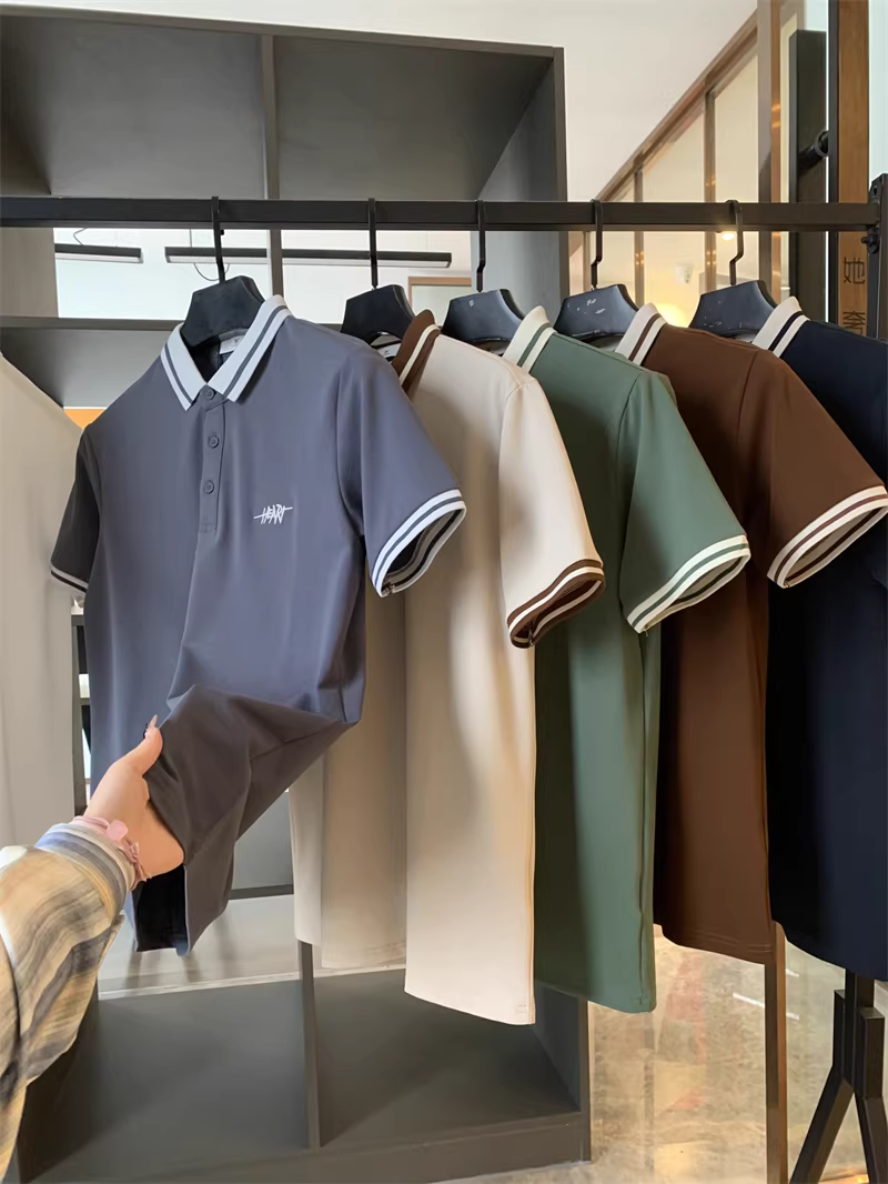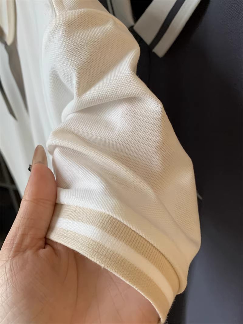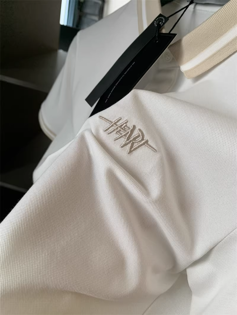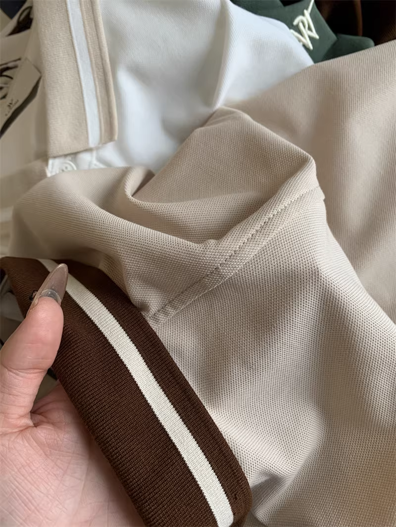 Áo Polo nam tay ngắn phối màu phong cách business casual, chất liệu cotton lưới Pique, thêu chữ tinh tế theo phong cách Don Quixote.