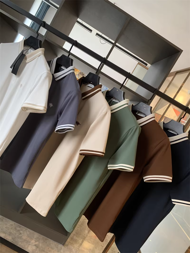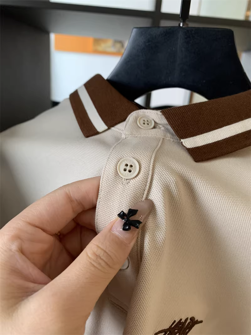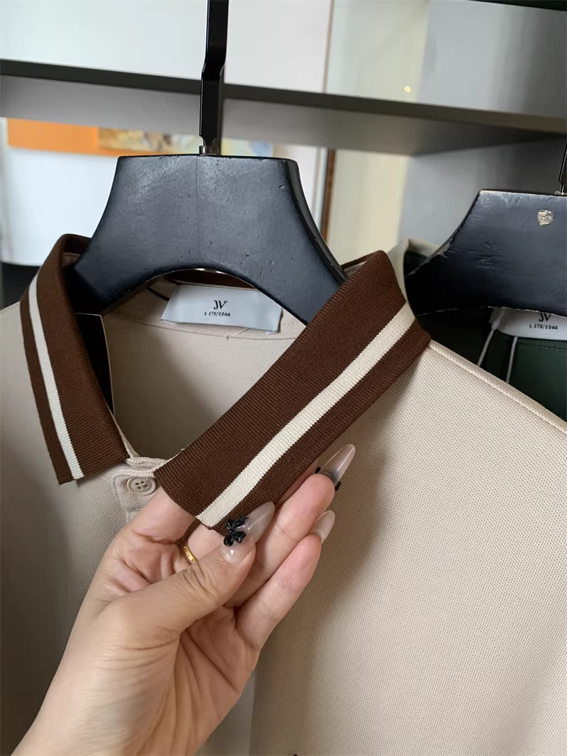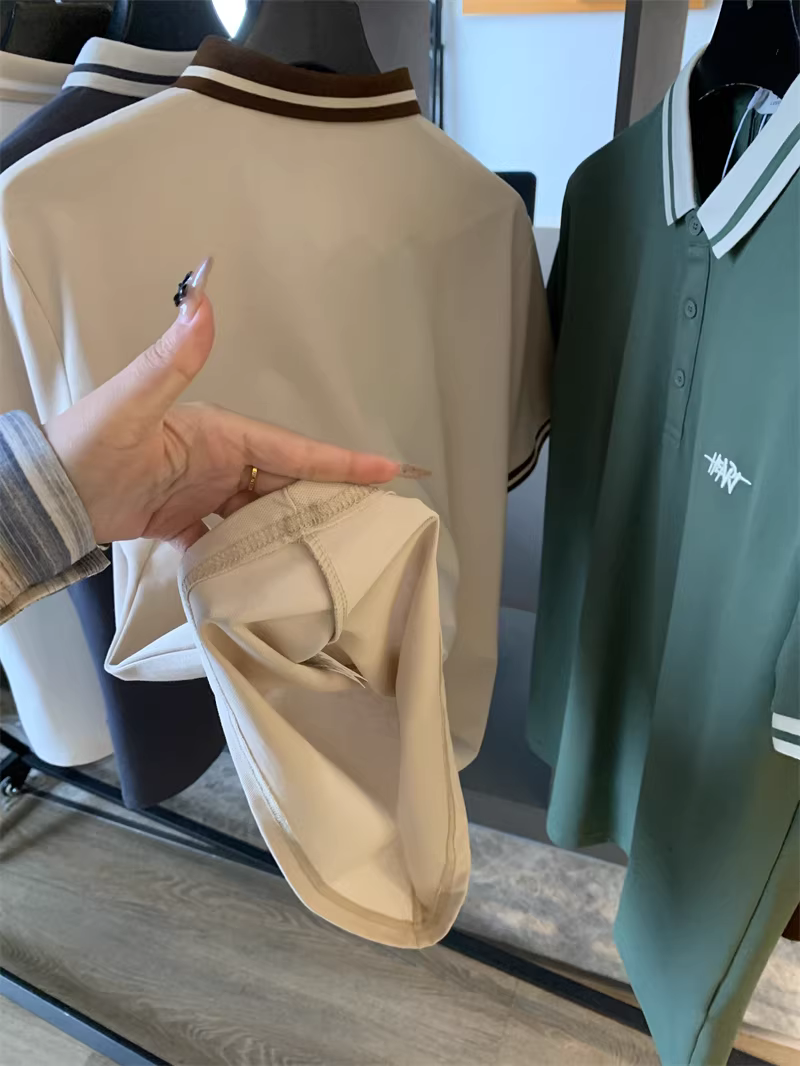 - Áo Polo nam tay ngắn phối màu phong cách business casual, chất liệu cotton lưới Pique, thêu chữ tinh tế theo phong cách Don Quixote.