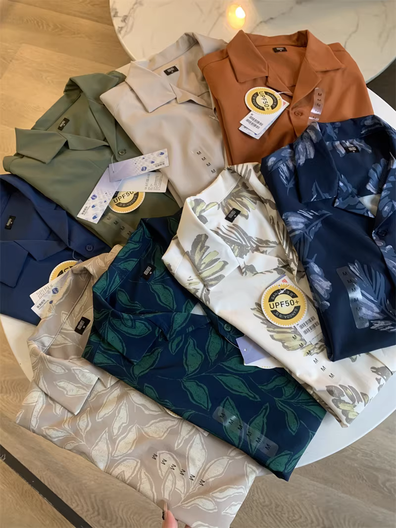 Áo sơ mi cổ Cuba tay ngắn phong cách Don Quixote U+! UPF50+! Thoáng khí và thân thiện với da, kiểu dáng thời trang dành cho cặp đôi.
