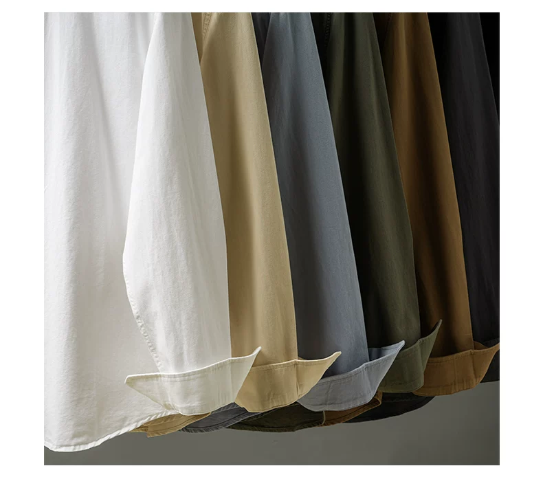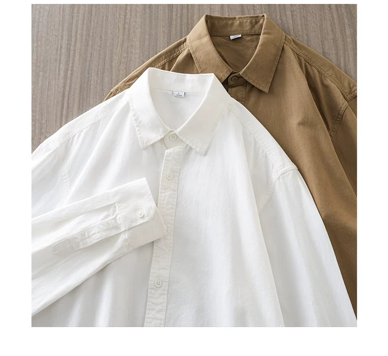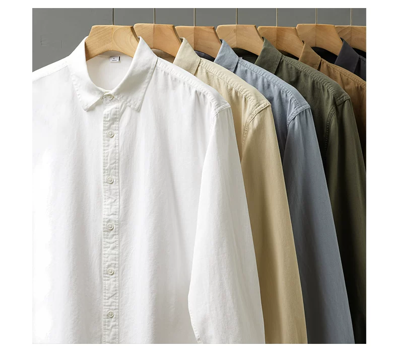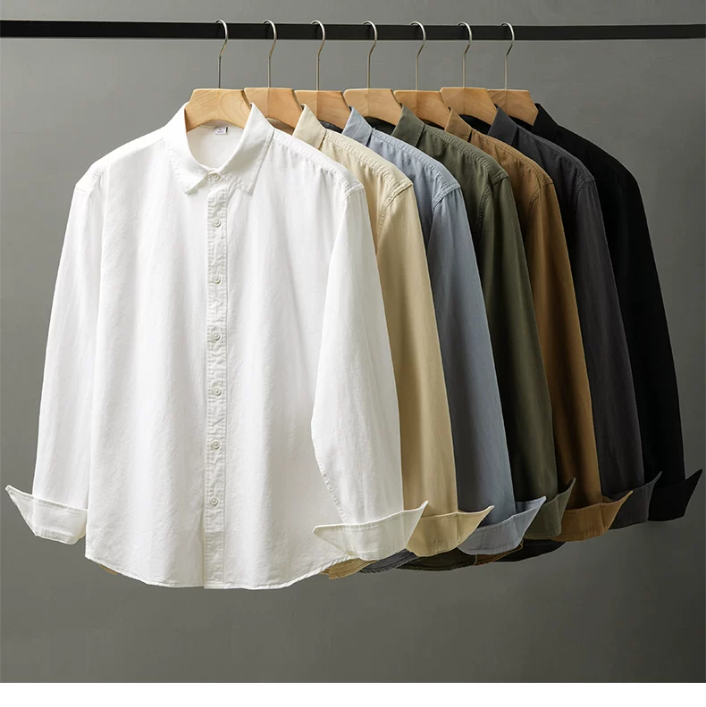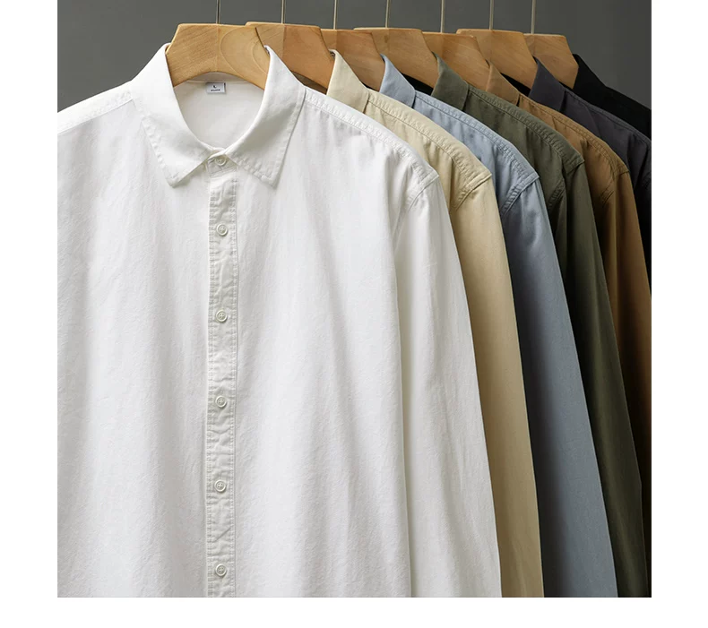 - Áo sơ mi cotton nguyên chất hạng nặng OMZM350G dành cho nam, dài tay, mùa thu, áo sơ mi màu trơn cao cấp, áo sơ mi kiểu Mỹ